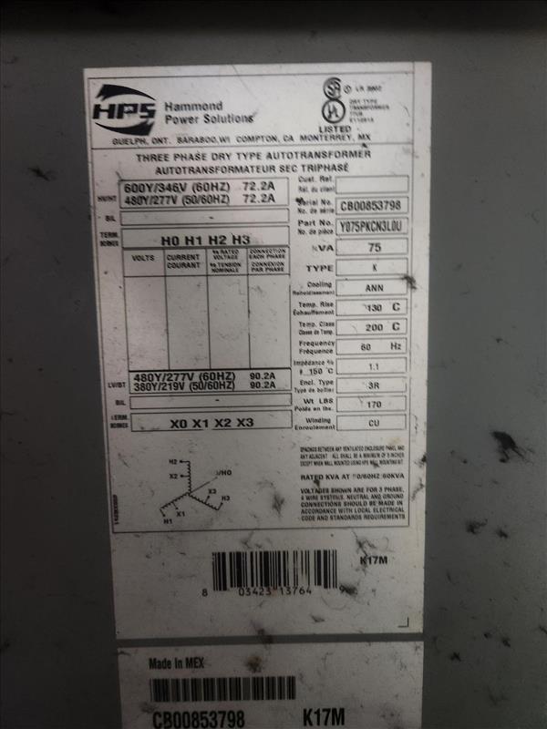 Regloplas Advance hot oil temperature controller, mod. 301DG/24/FM65/RT45, s/n 563166 c/w Hammond 75 kva transformer [Loc. Plant]
