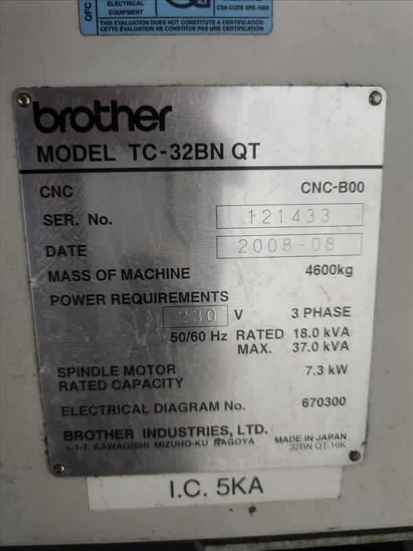 Brother CNC tapping center, mod. TC-32B, s/n 121972, 40X tool changer, (2X) 12 in. x 23.5 in. work table [Loc. Plant]