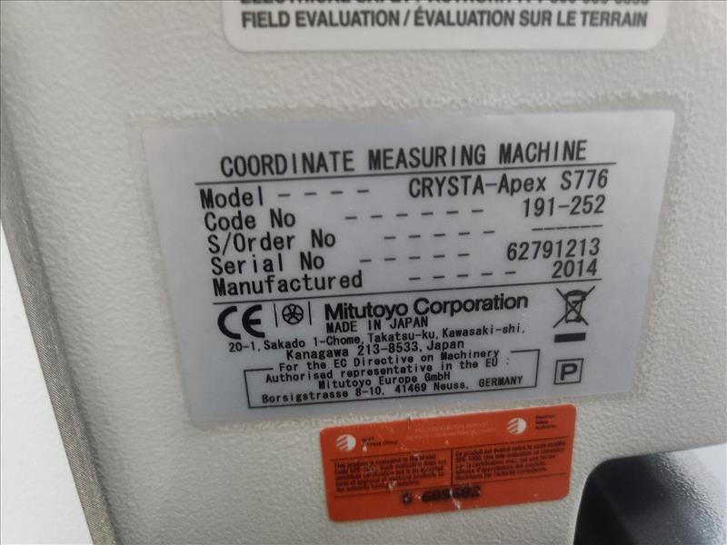 Mitutoyo CMM Coordinate Measuring Machine, mod. Crysta-Apex S776, s/n 62791213 c/w Renshaw PH10MQ probe and computer [Loc. CMM Rm.]