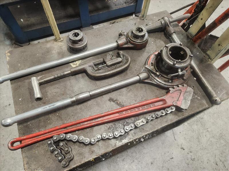 Armstrong pipe fitting tri-pod c/w misc. pipe fitting tools and cart [Loc. Shop]