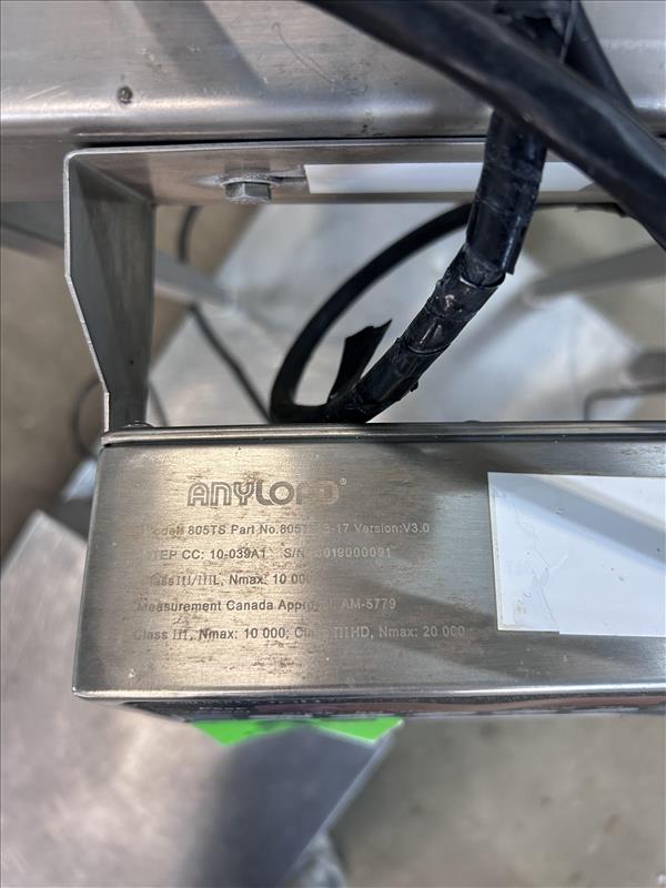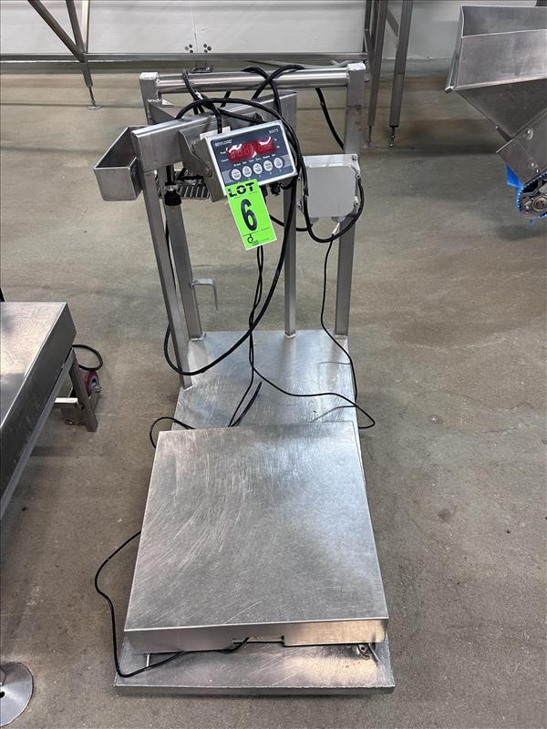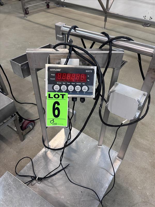 Mobile SS Platform Scale with ANYLOAD mod. 805TS Digital Weight Indicator, IP66, SS304, 6-Digit LED Display, mounted on a mobile SS flatbed cart. [Day 1]