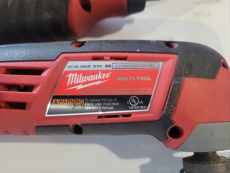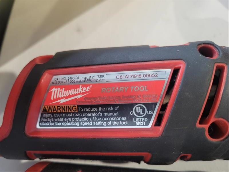 Lot of Assorted Milwaukee Tools Consisting of: (1) Milwaukee model no. 48-11-2401 M12 Battery Charger w/ 12v Battery, (1) Milwaukee model no. 2460-20 Rotary Tool 12 v, serial no. C81AD191800652, and (1) Milwaukee model no. 2426-20 Multi-Tool 12 v, serial no. C73AD200200485
