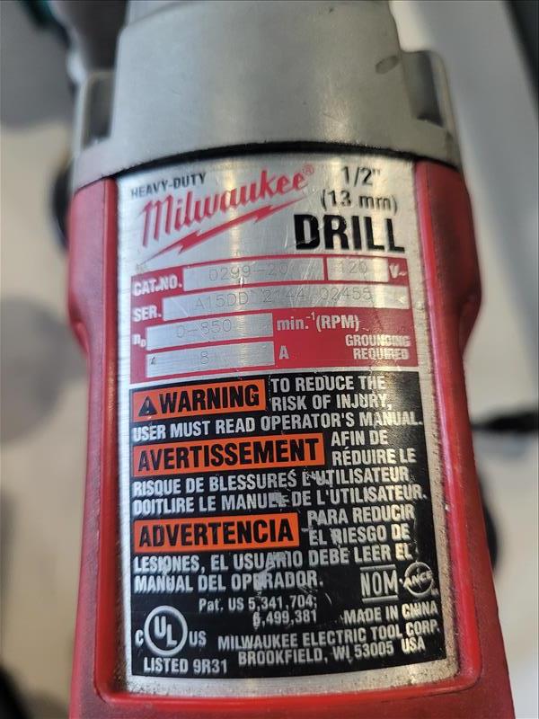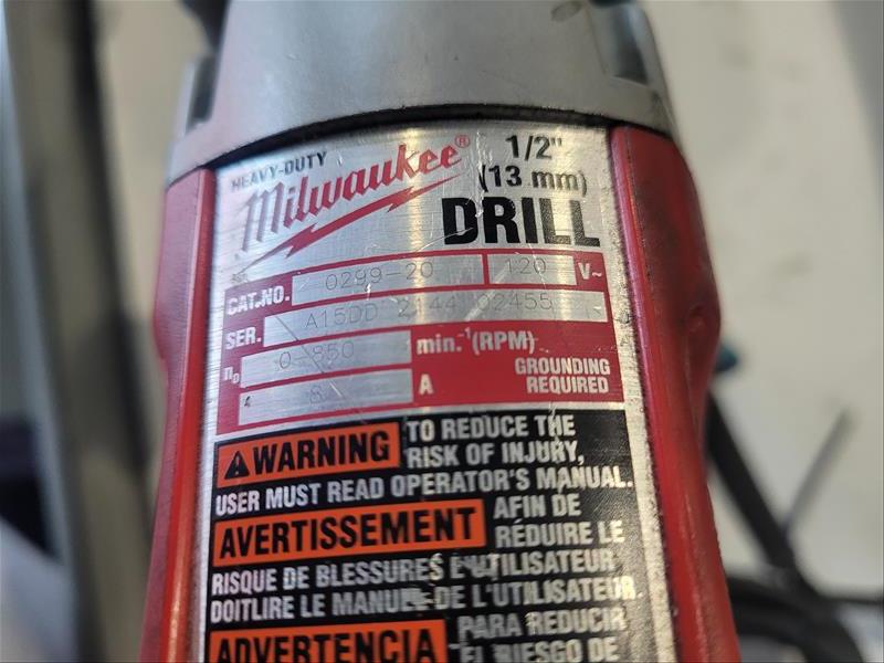 Lot (2) Milwaukee Tools Consisting of: (1) Makita model no. GA6010 Angle Grinder 120 v, serial no. 69912A, and (1) Milwaukee model no. 0299-20 1/2 in. Drill 120 v, serial no. A15DD214402455