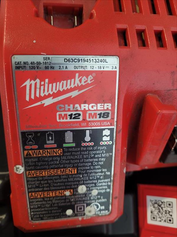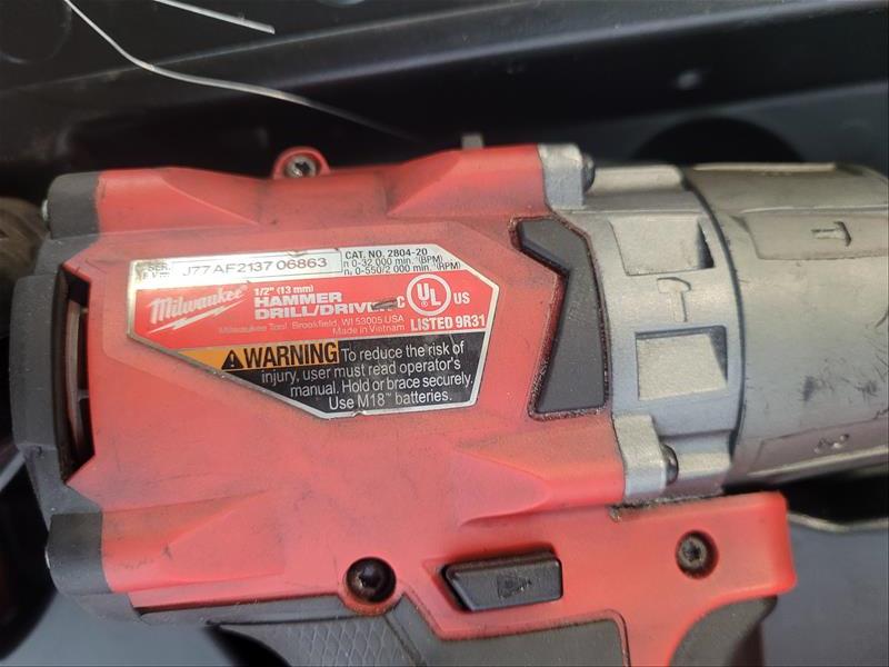 Milwaukee Toolkit Consisting of: (1) Milwaukee model no. 2804-20 1/2 in. Hammer Drill/Driver, serial no. J77AF213706863, (1) Milwaukee model no. 48-59-1812 Battery Charger 120 v Input, 12-18 v Output, serial no. D63C9194513240L, (1) Milwaukee 1/4 in. Hex Impact Driver, and (1) Milwaukee Battery Pack 18 v