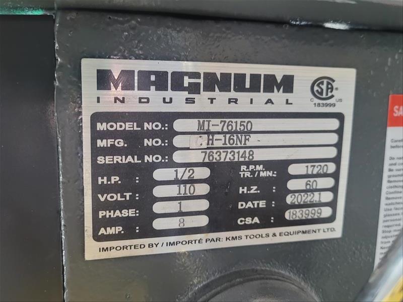 Magnum model no. MI-76150 1/2 HP Pedestal Drill 110 v, 1720 RPM, 8 AMPS, 60 Hz, serial no. 76373148