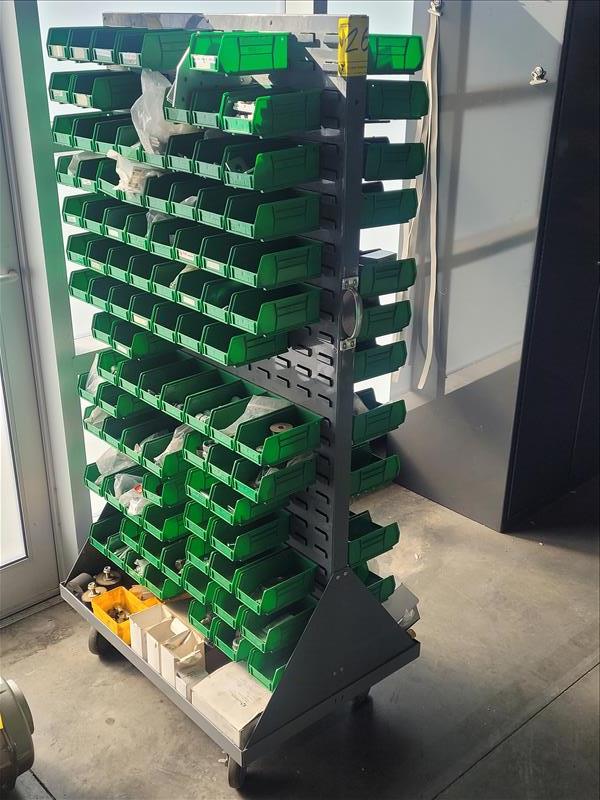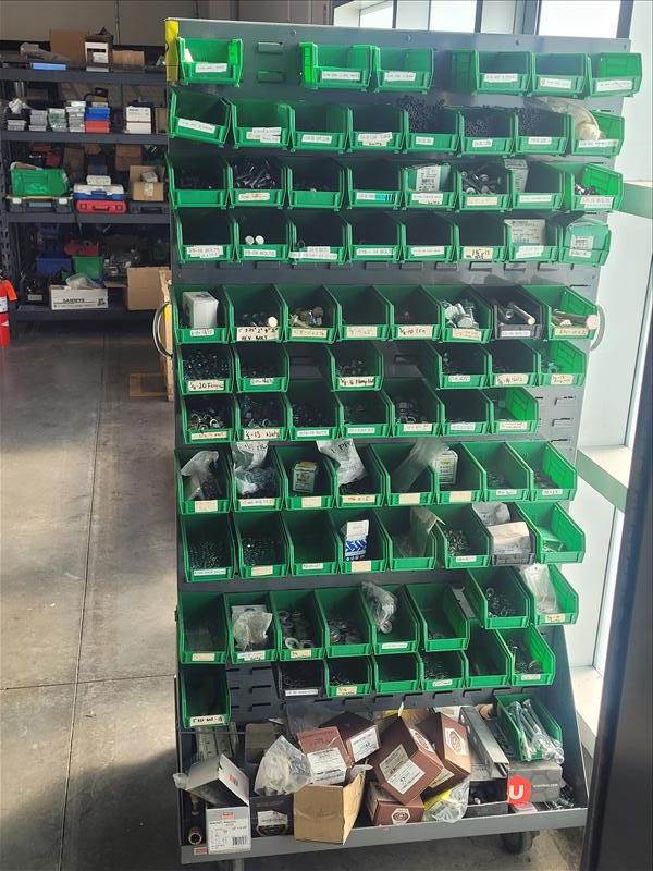 Rollaround Parts Bin Rack w/ Contents Consisting of: Nuts and Bolts (Please Inspect)