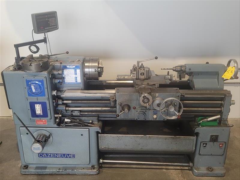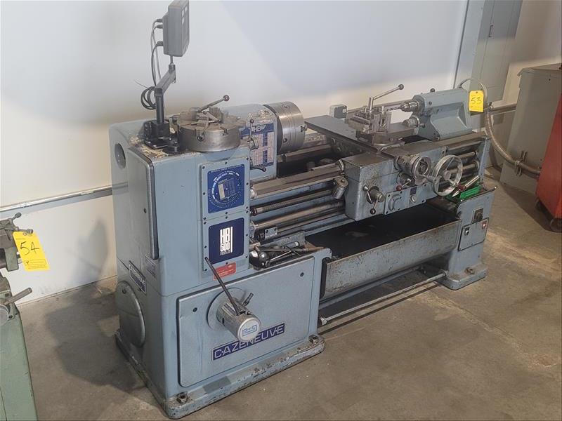 CazeNeuve model no. HB500 Engine Lathe Distance between centers: 1500mm, Swing over bed: 500mm, Swing over carriage: 220mm, Motor power: 10cv, Spindle nose: 40,5mm w/ DRO model no. GCS900-2DB Controls