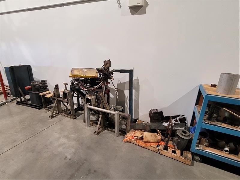 Lot of Assorted Spare Parts Consisting of: Hydraulic Lines, Hydraulic Pumps, Motors, and Saw Horses (Please Inspect)