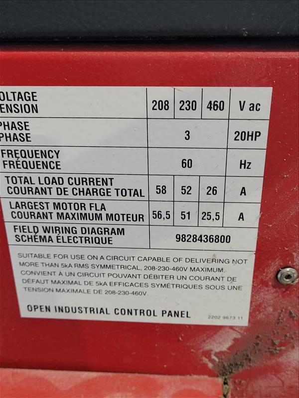 Chicago Pneumatic model no. QRS20 20 HP Air Compressor 460 v, 3 ph, 60 Hz