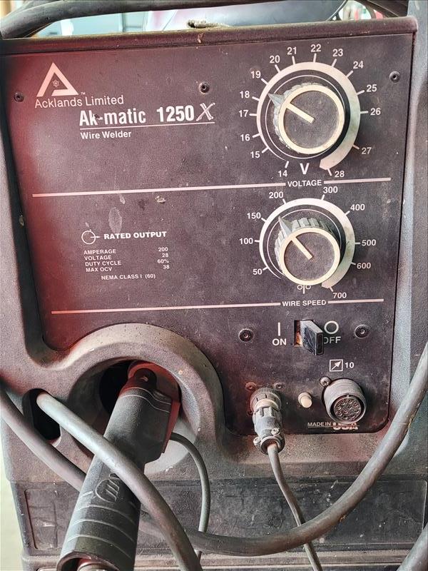 Acklands model no. Akmatic 1250X Wire Welder 28 v, 200 AMPS, serial no. KK021461 (Please Note: Tank Not Included)