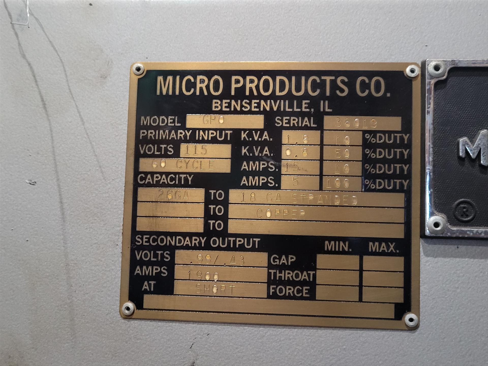 Microweld mod. GPO Butt Welder 115 v, 15 AMPS, ser. no. 36019
