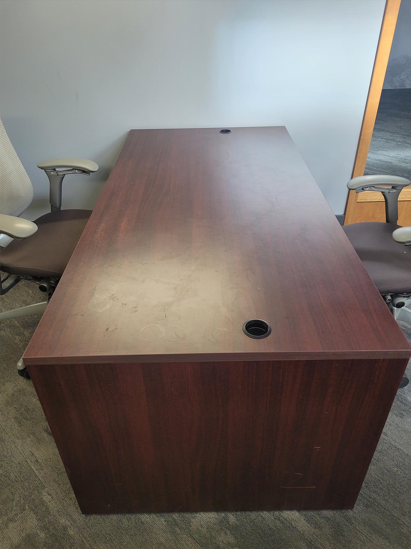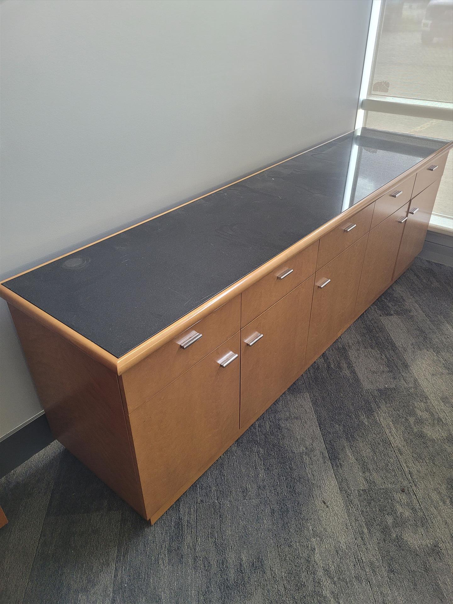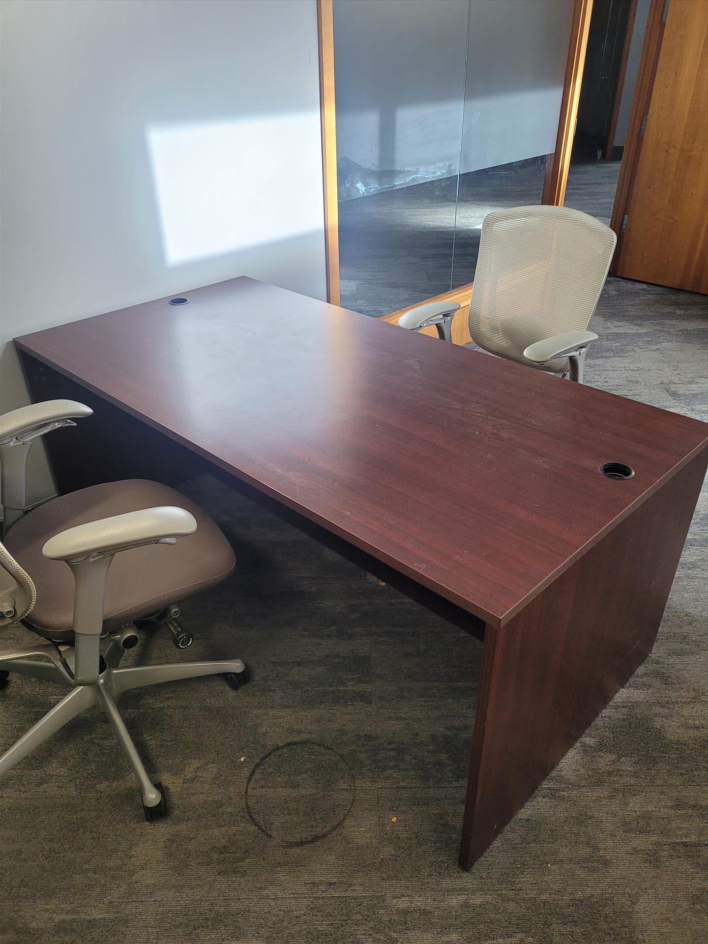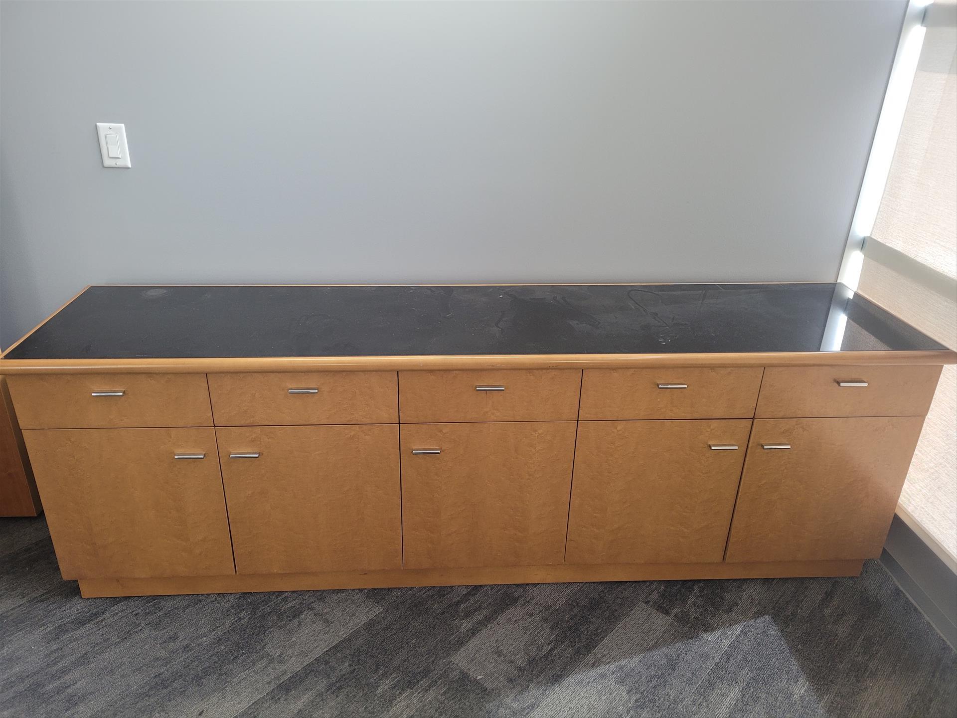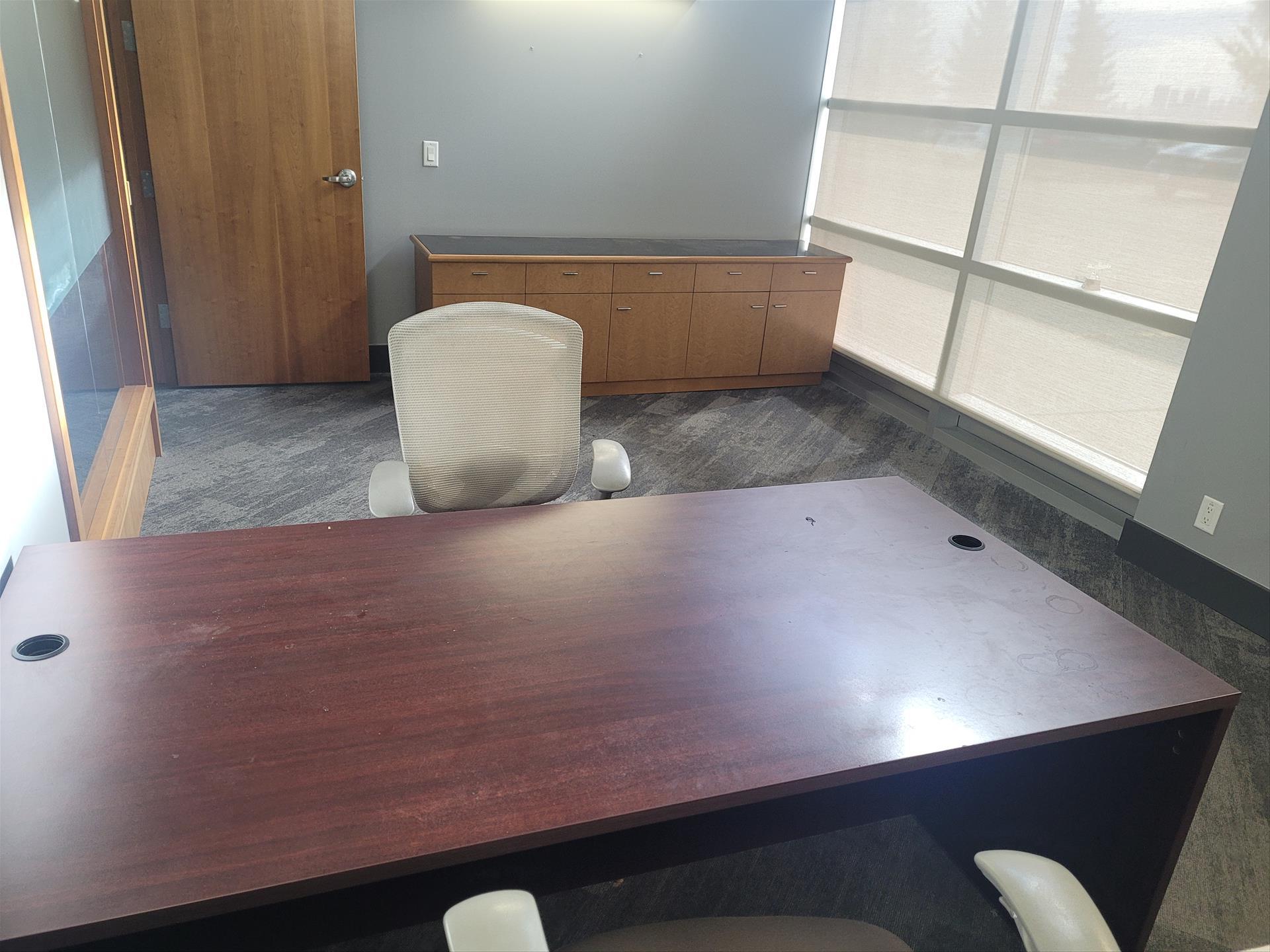 Lot of Assorted Office Furniture Consisting of: (1) 71 in. x 36 in. Office Desk, (1) 93 in. x 22 in. Cabinet, (1) 6-Shelf Bookshelf, (1) 1-Shelf Bookshelf, and (2) Rolling Office Chairs