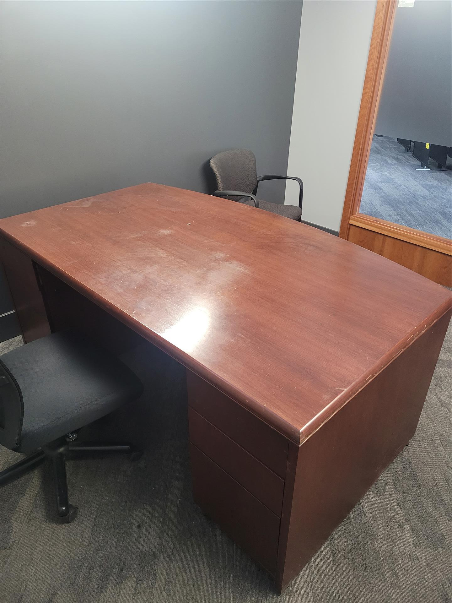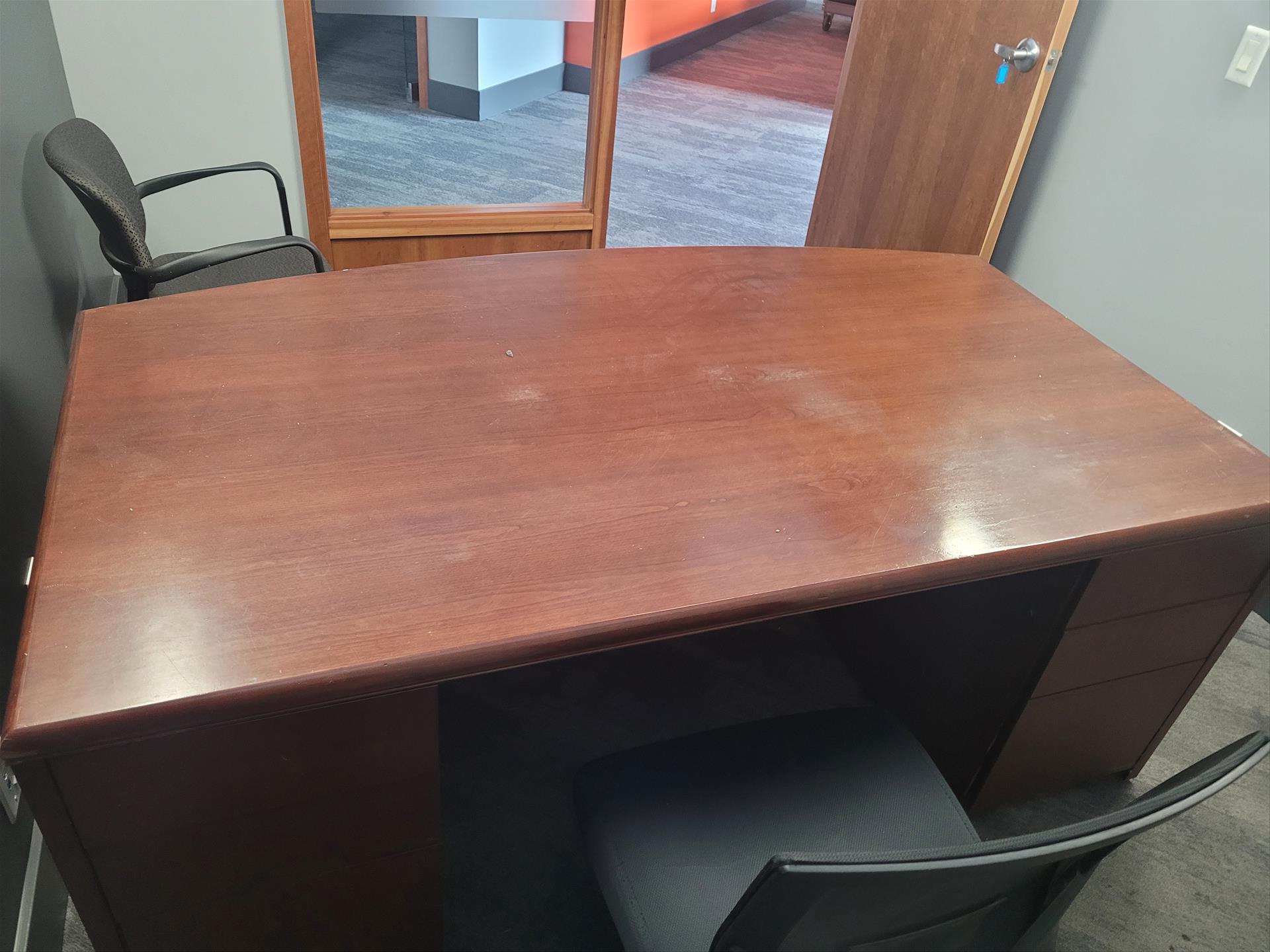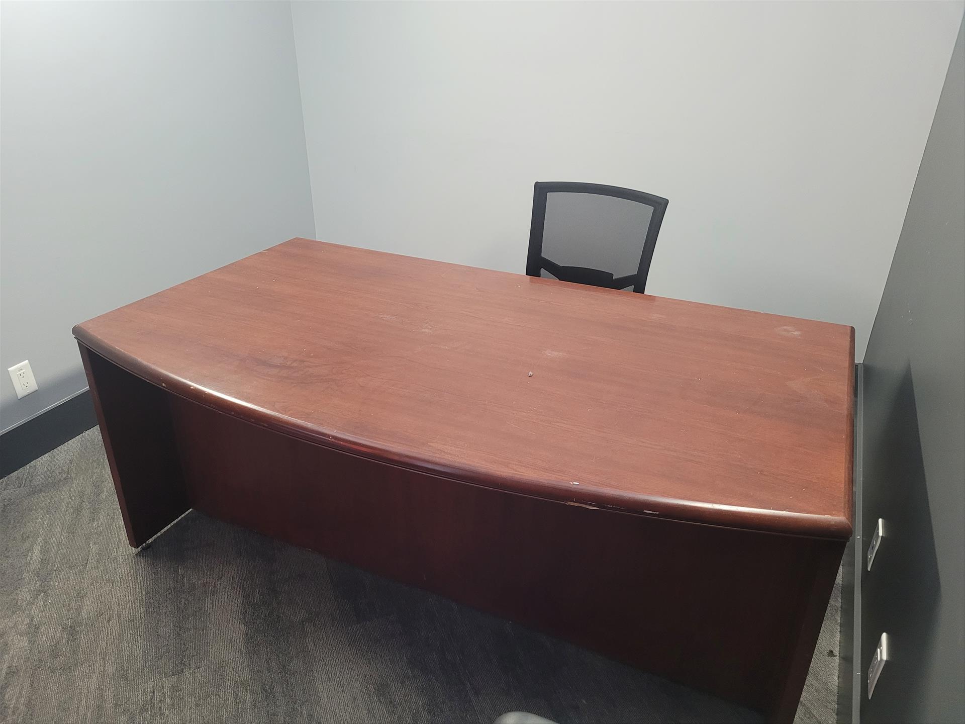 Lot of Assorted Office Furniture Consisting of: (1) 73 in. x 43 in. Office Desk, (1) Rolling Office Chair, and (1) Stationary Office Chair