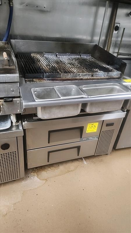Vulcan grill, mod. VACB36-101, ser. no. 650200352, approx. 24 in. x 32 in., LNG, stainless steel c/w True refrigerated 2-drawer cabinet, stainless steel