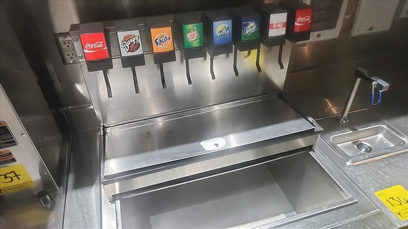stainless steel counter, approx. 30 in. x 84 in. c/w soda/water dispensers