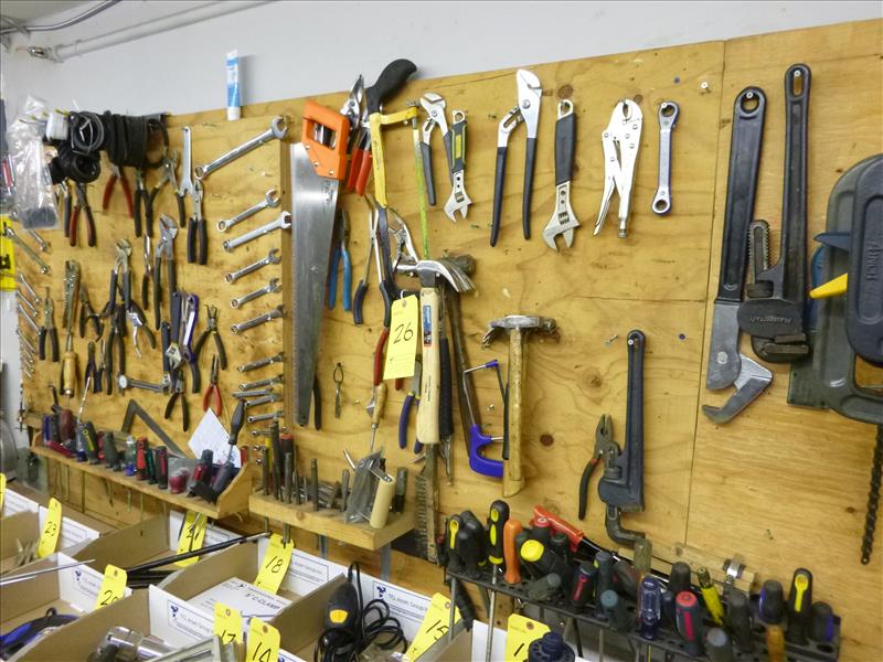 assorted hand tools on wall