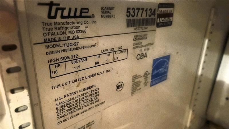 True undercounter refrigerator, mod. TUC-27, ser. no. 5377134, stainless steel