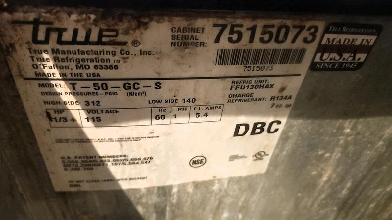True chest refrigerator, mod. T-50-GC-S, ser. no. 7515073, stainless steel