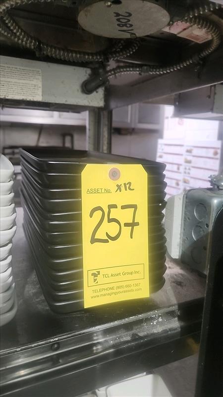 (Qty. 12) Dodson rectangular serving platers, 6.5 in. x 14 in. , black