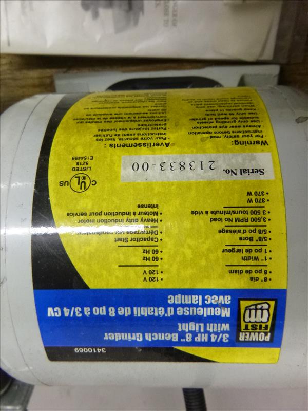 Powerfist 3/4 hp. Bench grinder w/stand & light