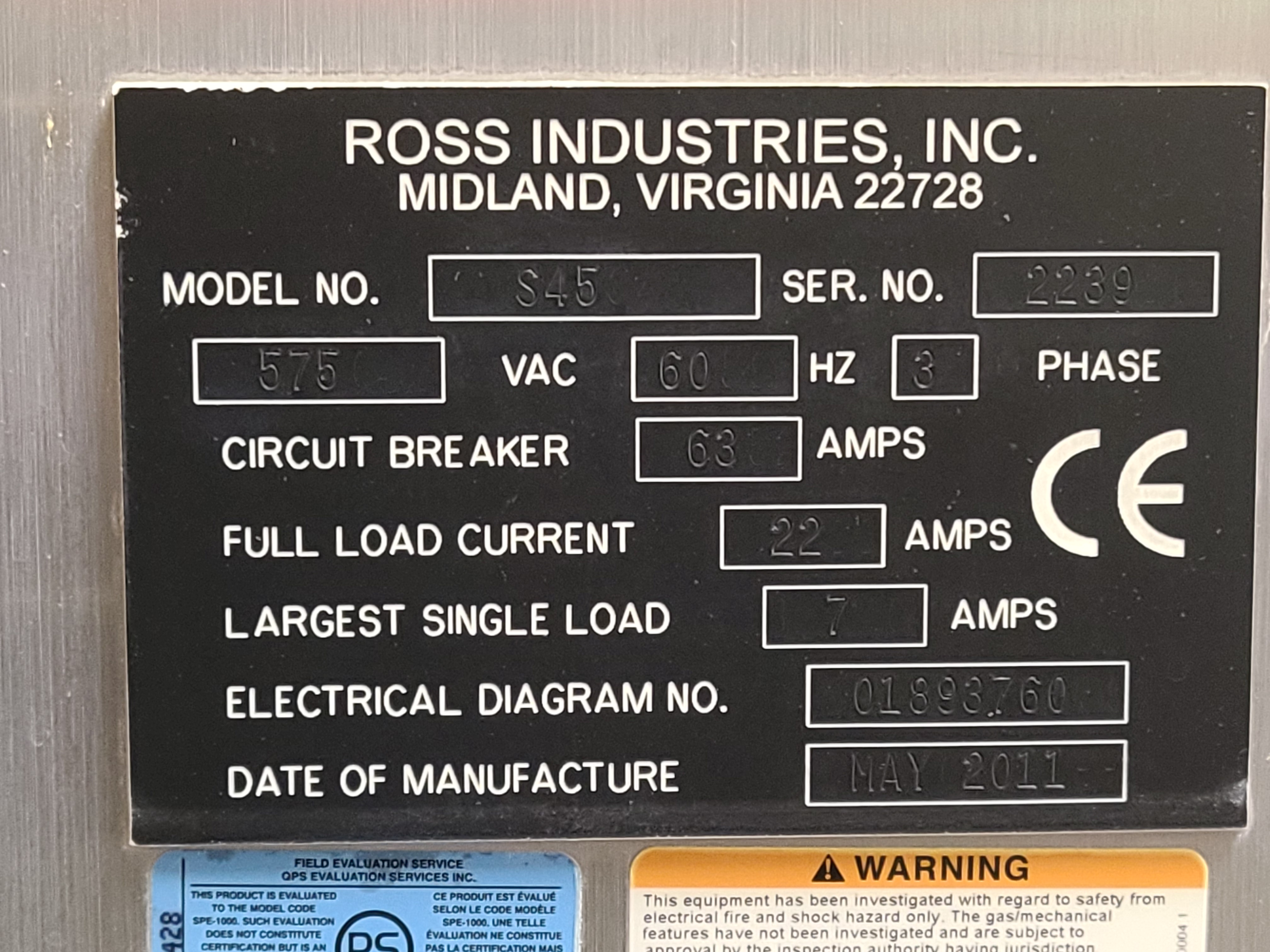Reiser Ross Inpack Preformed Tray Sealer, model S45, S/N 2269, 575 volts, 3 phase, 60 Hz (2011) (Subject to Confirmation) [Loc. Shipping/Receiving]