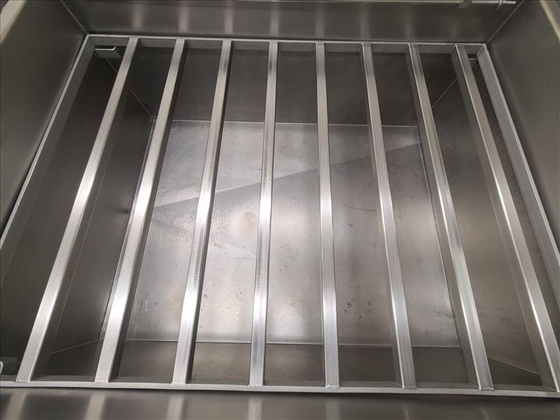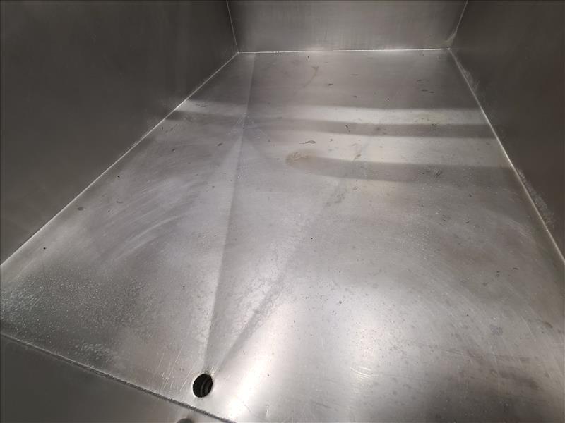Stainless Steel Tank, approx. 54 in. x 40 in. x 23 in. Depth, w/stainless steel racks, approx. 54 in x 40 in., casters [Loc. Sanitation Room]