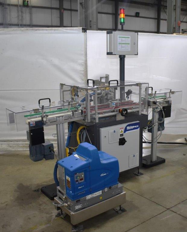 Endflex (Paxiom) Small Footprint Vertical Cartoner, Model BOXXER KARTNR. Capable of speeds up to 60 CPM (depending on application). Size range: 1\" (25mm) to 4.5\" (114mm) length x 1\" (25mm) to 4.5\" (114mm) x 2.36\" (60mm) to 5\" (127mm) carton height. ser. no. P110091 020 / 19525, Set up for auto bottom cartons, has automatic bottle dropper and set up for tuck top style cartons. Control panel with Omron NJ101-1000 PLC, Weintek HMI, Omron R88D-1SN Servo drive. Set-up for 50ml carton, box dimension 1.62\"L x 1.62\"W x 5\"D, product dimension 1.43\" diameter, 4.62\"T. 3/60/240 Volt. Unused [Located in Chicago, Illinois]