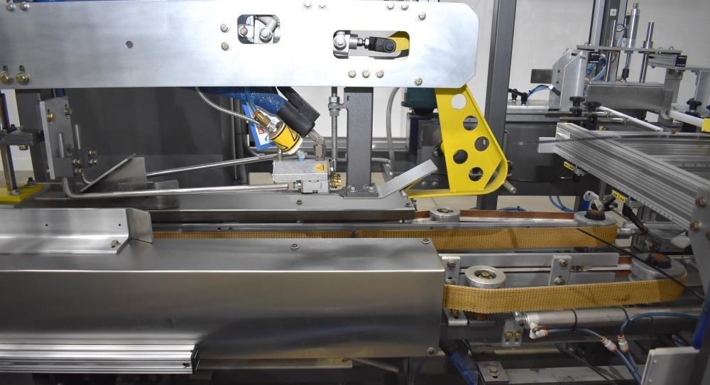 Weighpack Systems Pressure Sensitive Labeler with X Stamp (Tax Stamp) Applicator. ser. no. 6310. Automatic application of a sticker (original intent: Tamper evident or excise stamp) across top and side face of a jar/carton. Omron FQ2-S25100N Smart Camera. Siemens Simatic PLC, Siemens TP700 Comfort HMI, Rexroth IndraDrive Servo drives. Nordson Problue 4 hot glue system. Serial# 15015/10. Built 2020. 3/60/480 Volt. Unused [Located in Chicago, Illinois]