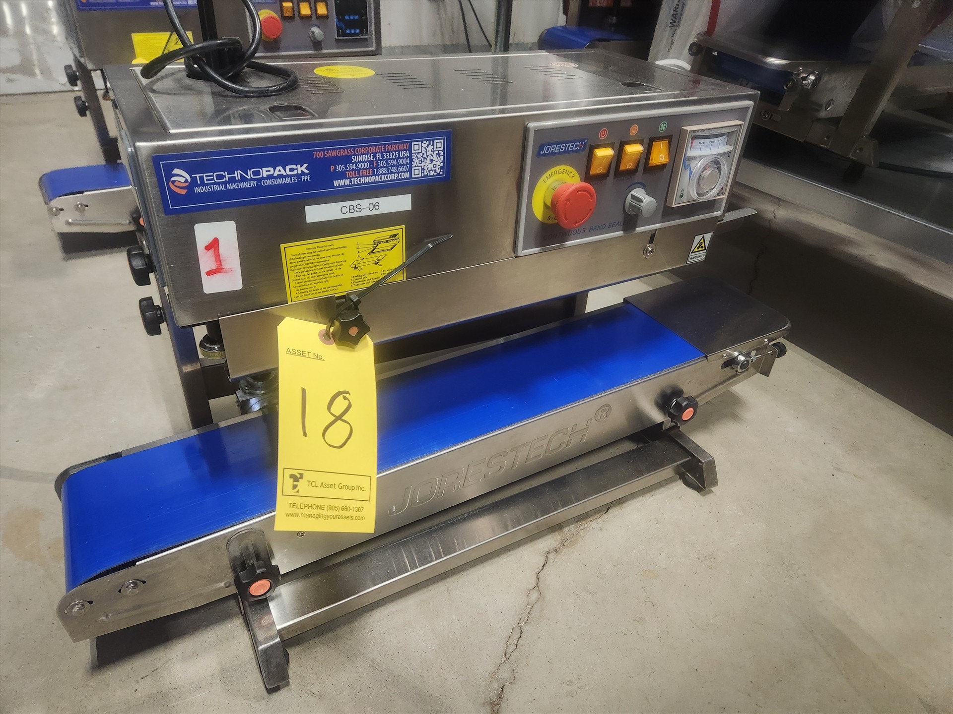 Technopack Jorestech continuous band sealer, mod. E-CBS-730D, (2020), 16mm/min. cap., 5.5 in. x 27 in. belt conveyor, stainless steel [Loc. Energy Centre]
