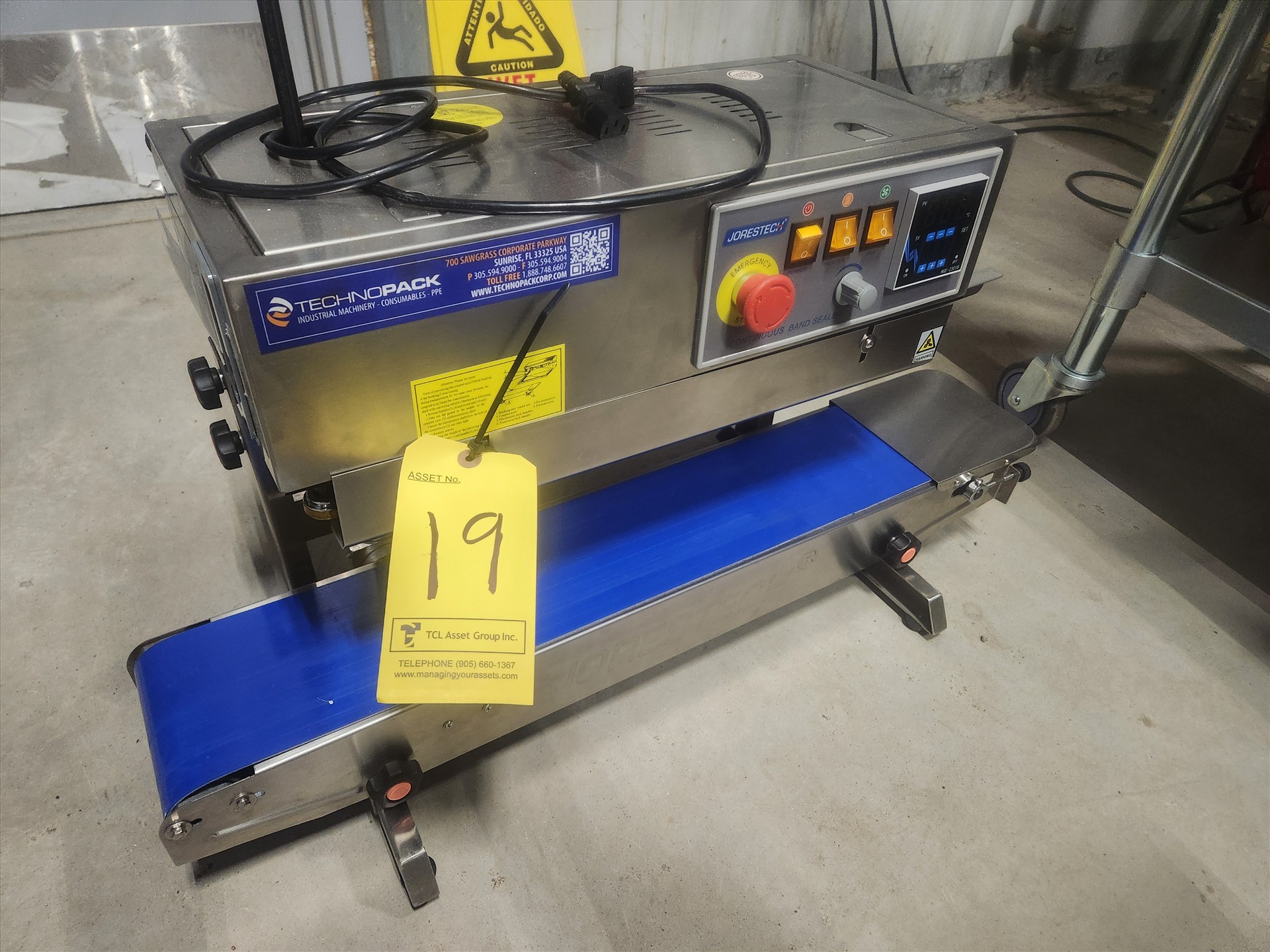 Technopack Jorestech continuous band sealer, mod. E-CBS-730D, (2020), 16mm/min. cap., 5.5 in. x 27 in. belt conveyor, stainless steel [Loc. Energy Centre]