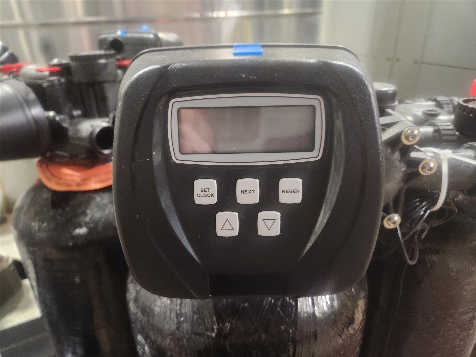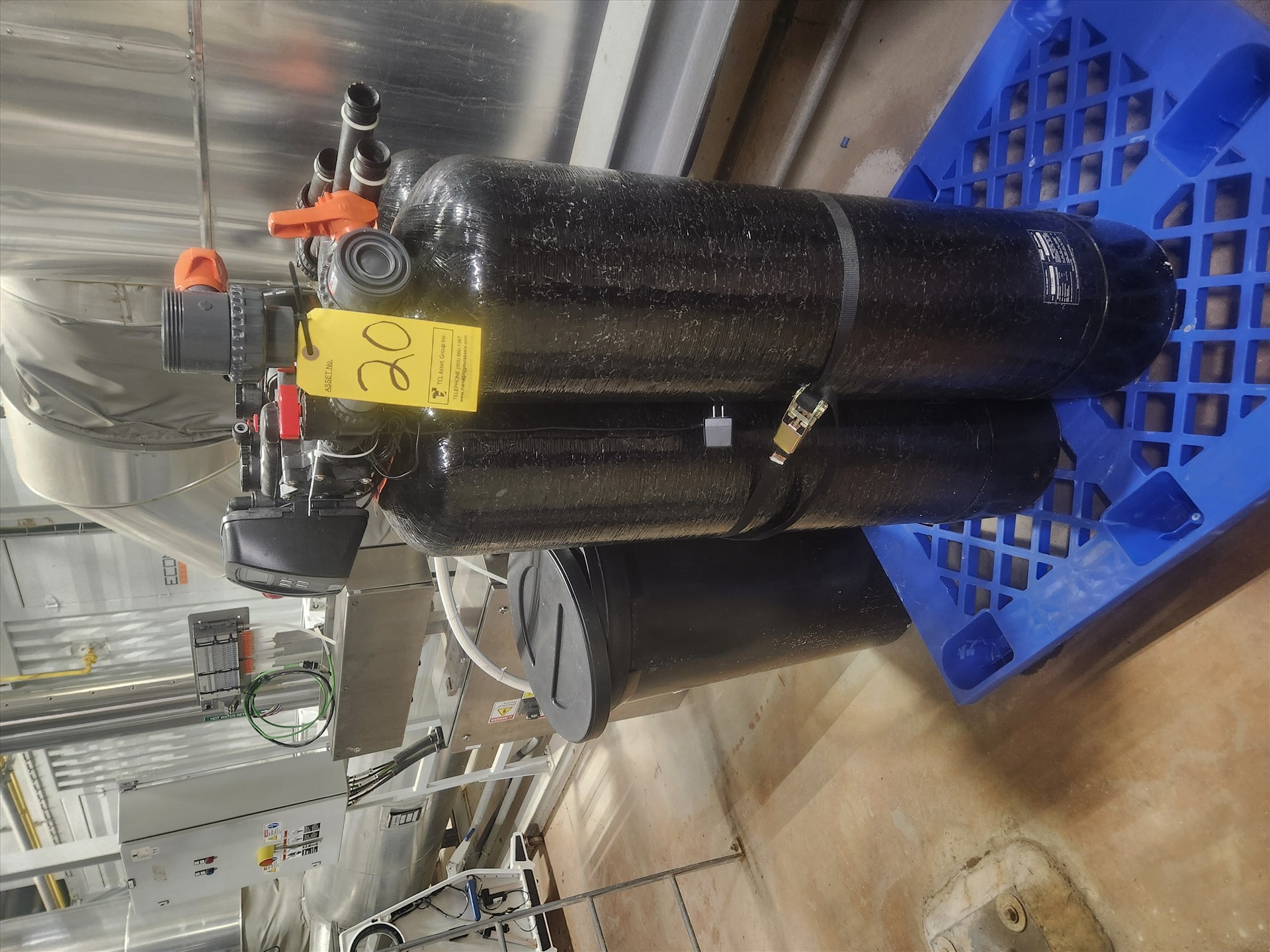 (3) water softener tanks w/ (2) valves and (1) brine tank [Loc. Energy Centre]