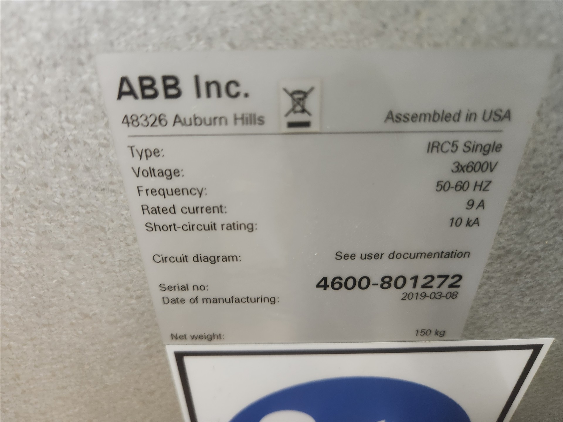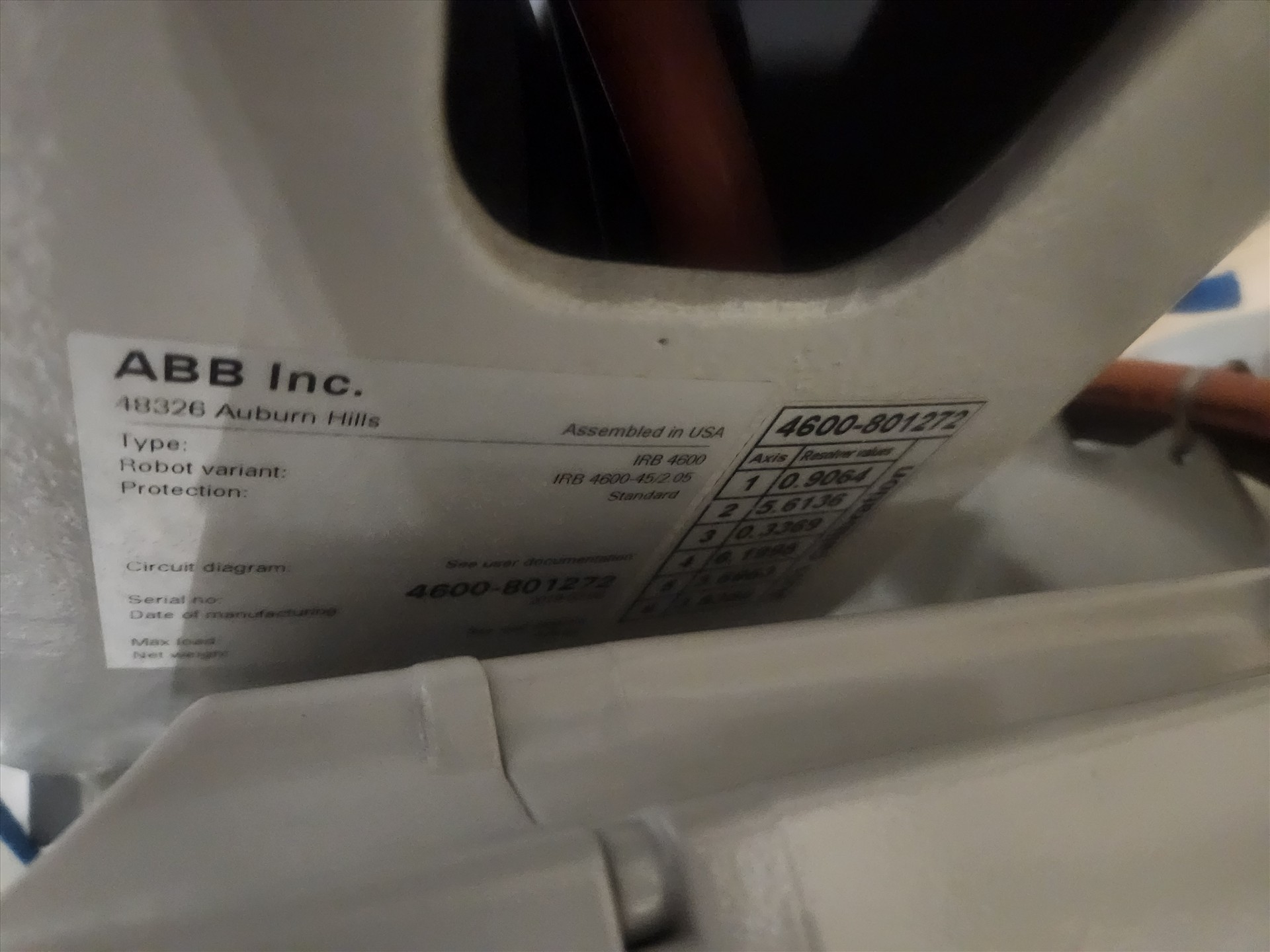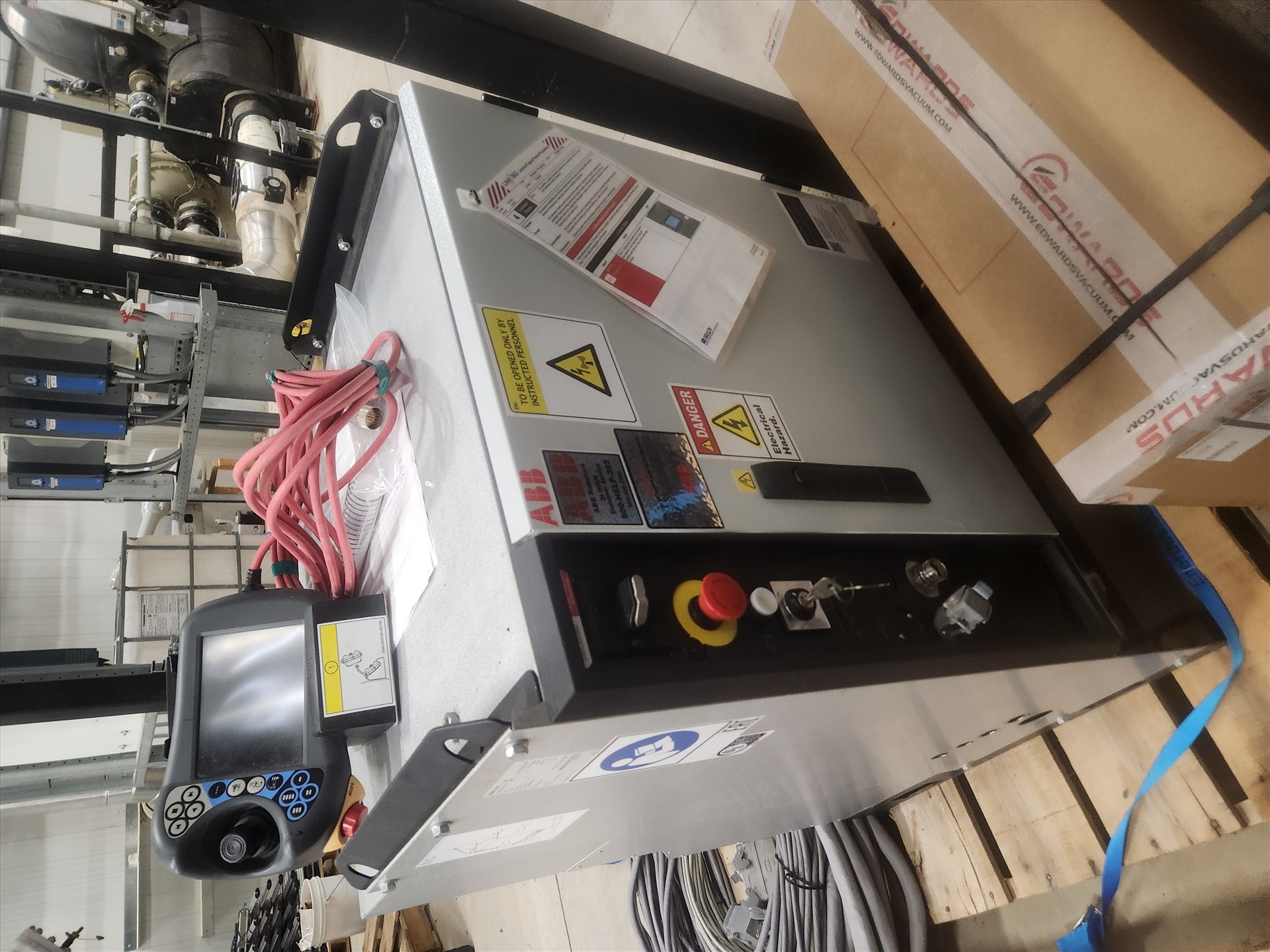 ABB pick-and-place robot, mod. TRB4600, ser. no. 4600-801272 c/w controller, mod. IRC5 Single and hand controller [Loc. \"D\" Chiller]