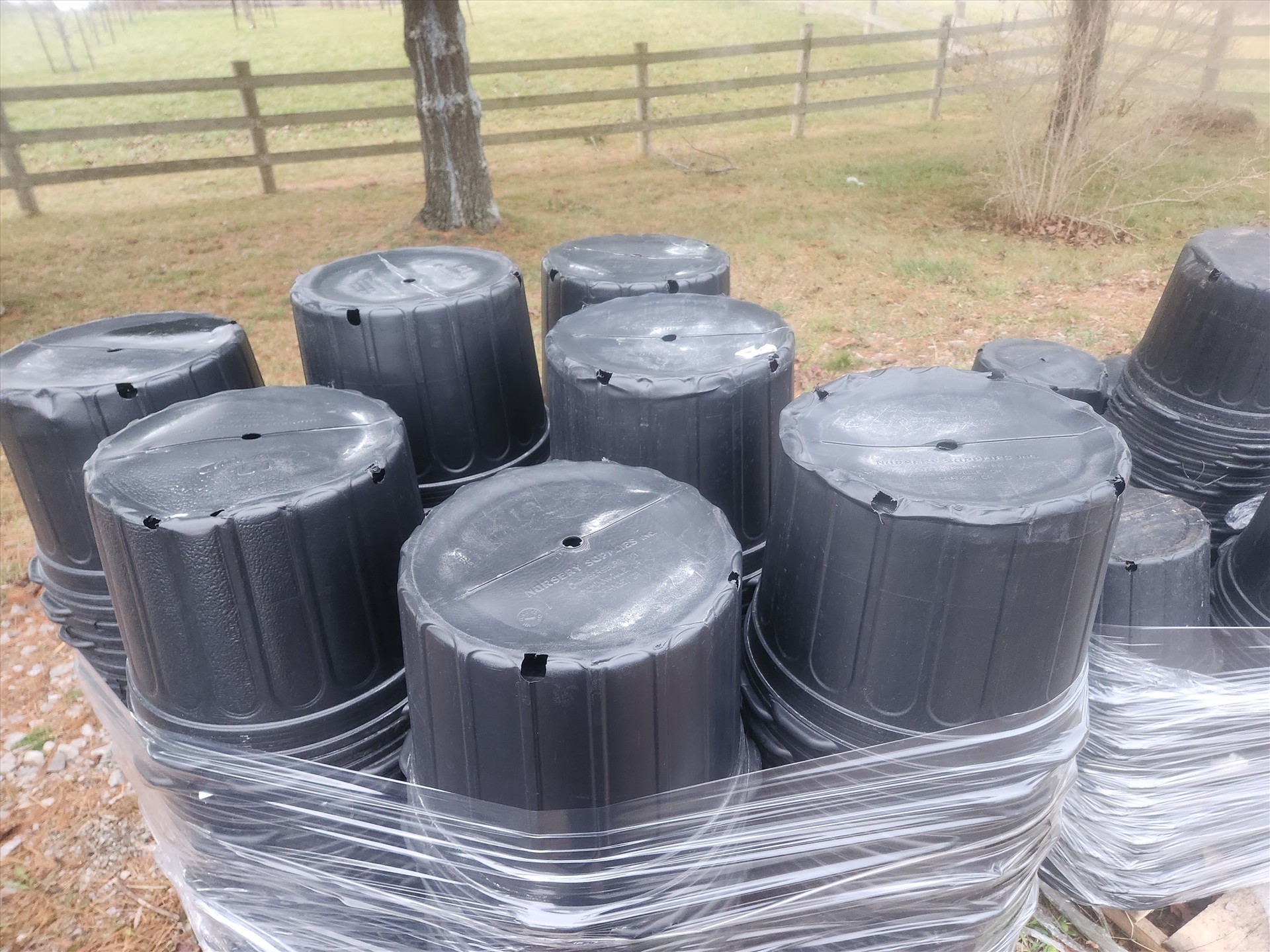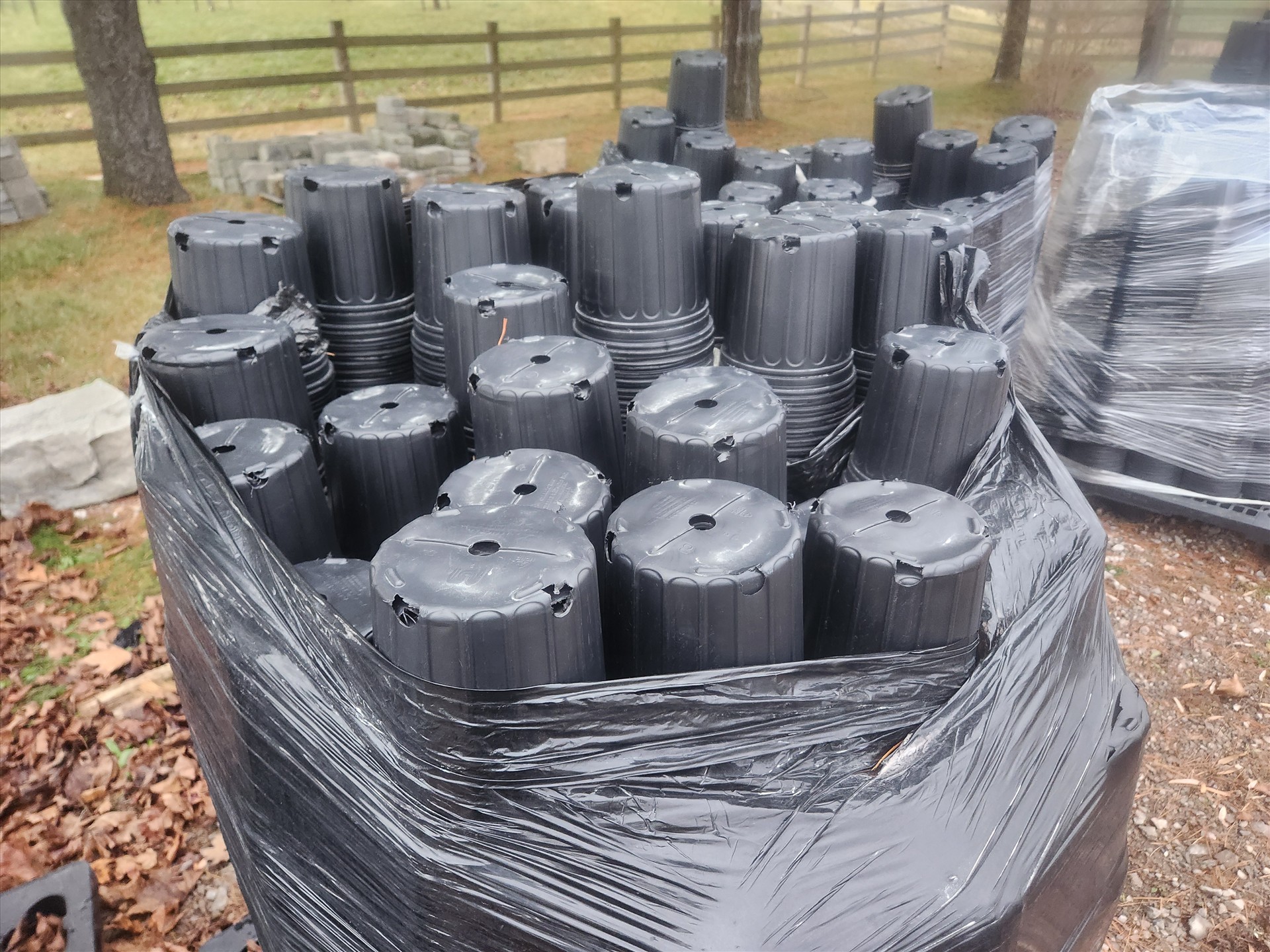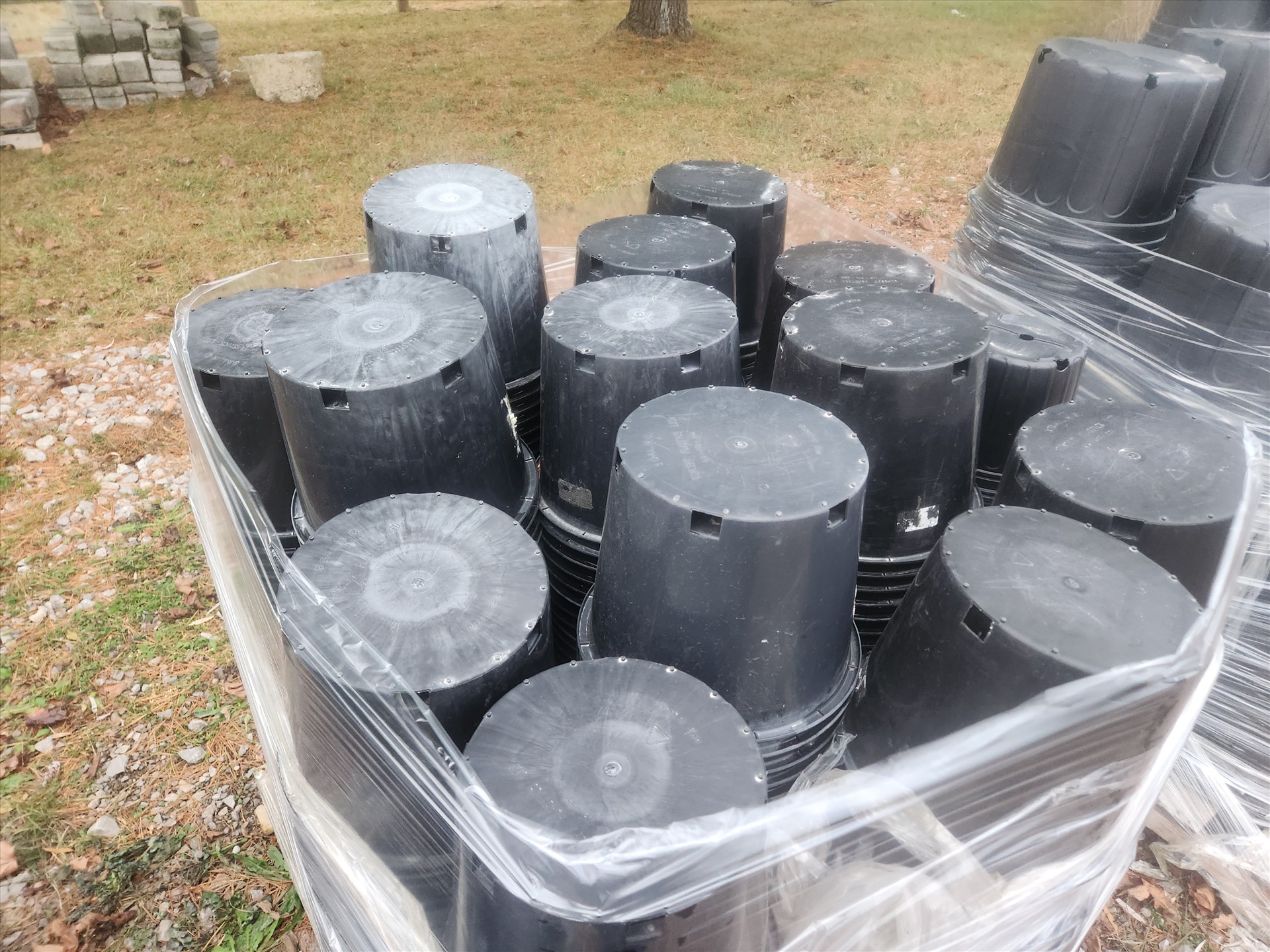 (9 skids) misc. plastic flower pots, var. sizes (tagged as 35) [Loc. Yard]