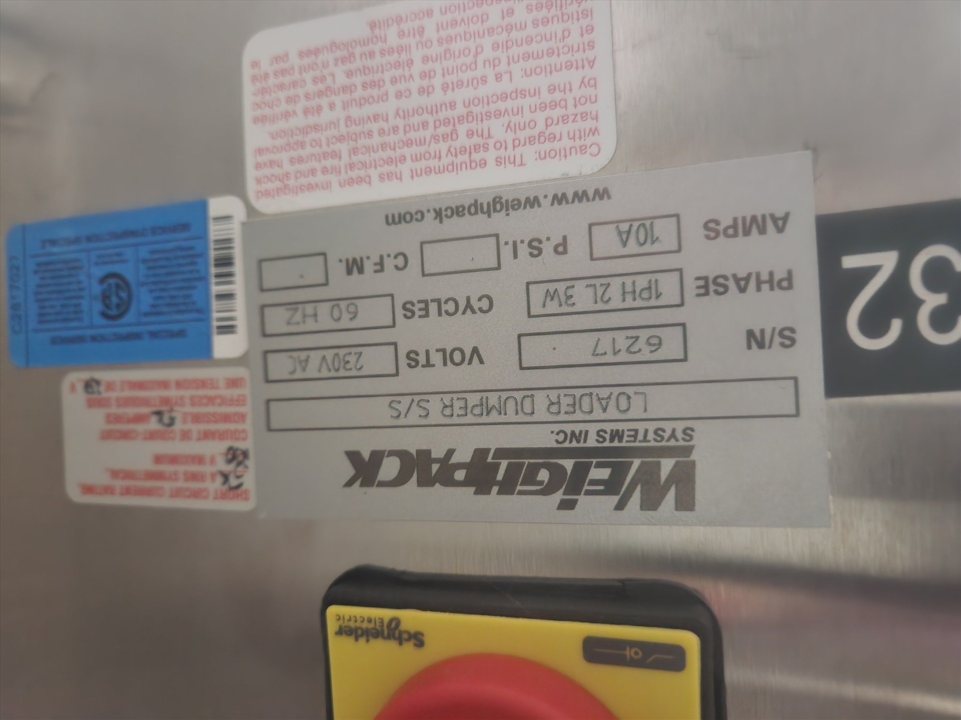 WeighPack loader/dumper elevator, ser. no. 6217, 14 ft. lift height, stainless steel, 2 hp induction motor c/w vibratory feeder (Subject to confirmation. The winner will be determined based on the sum of bids on lots 39-50E vs on bulk bid lot 38) [Loc. Warehouse]