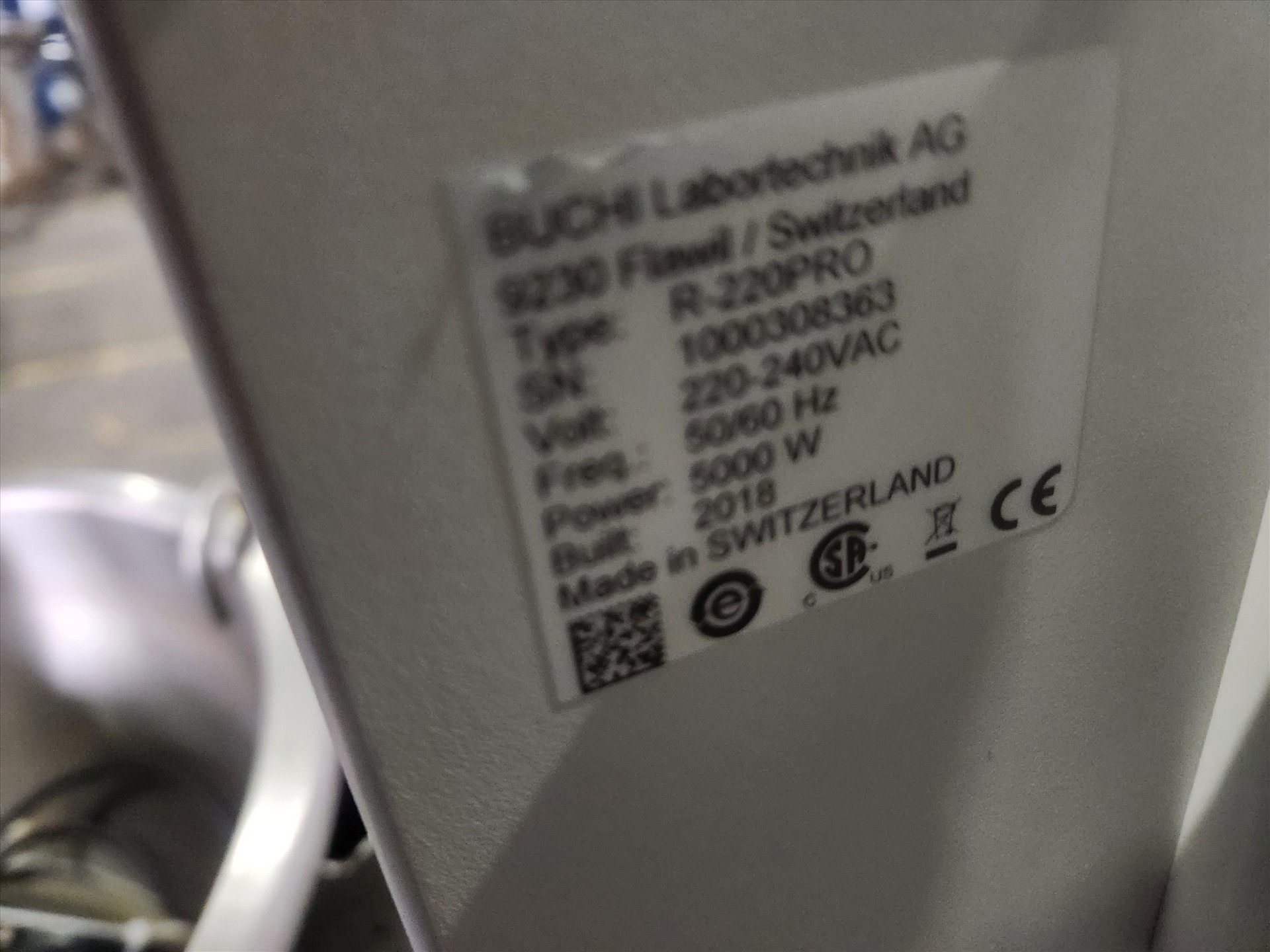 Buchi Rotovap evaporator, mod. R-220PRO, ser. no. 1000308363 (2017) w/ Interface I-300PRO, F-325 recirculating chiller, V-600 vacuum pump c/w accessories [Loc. Warehouse]