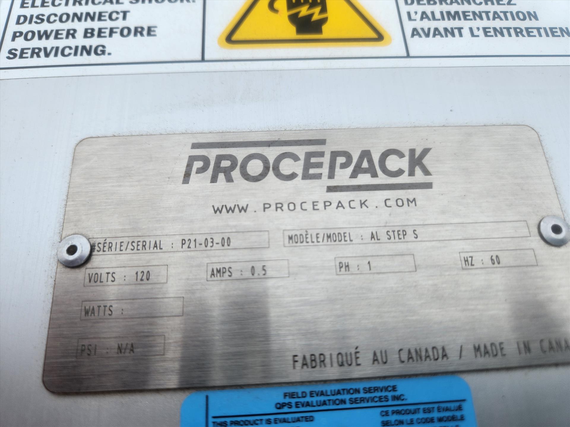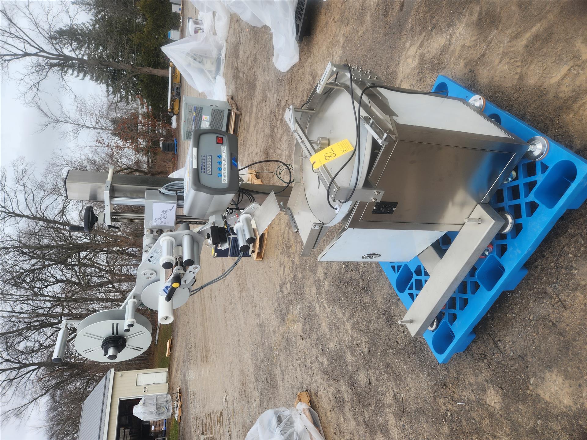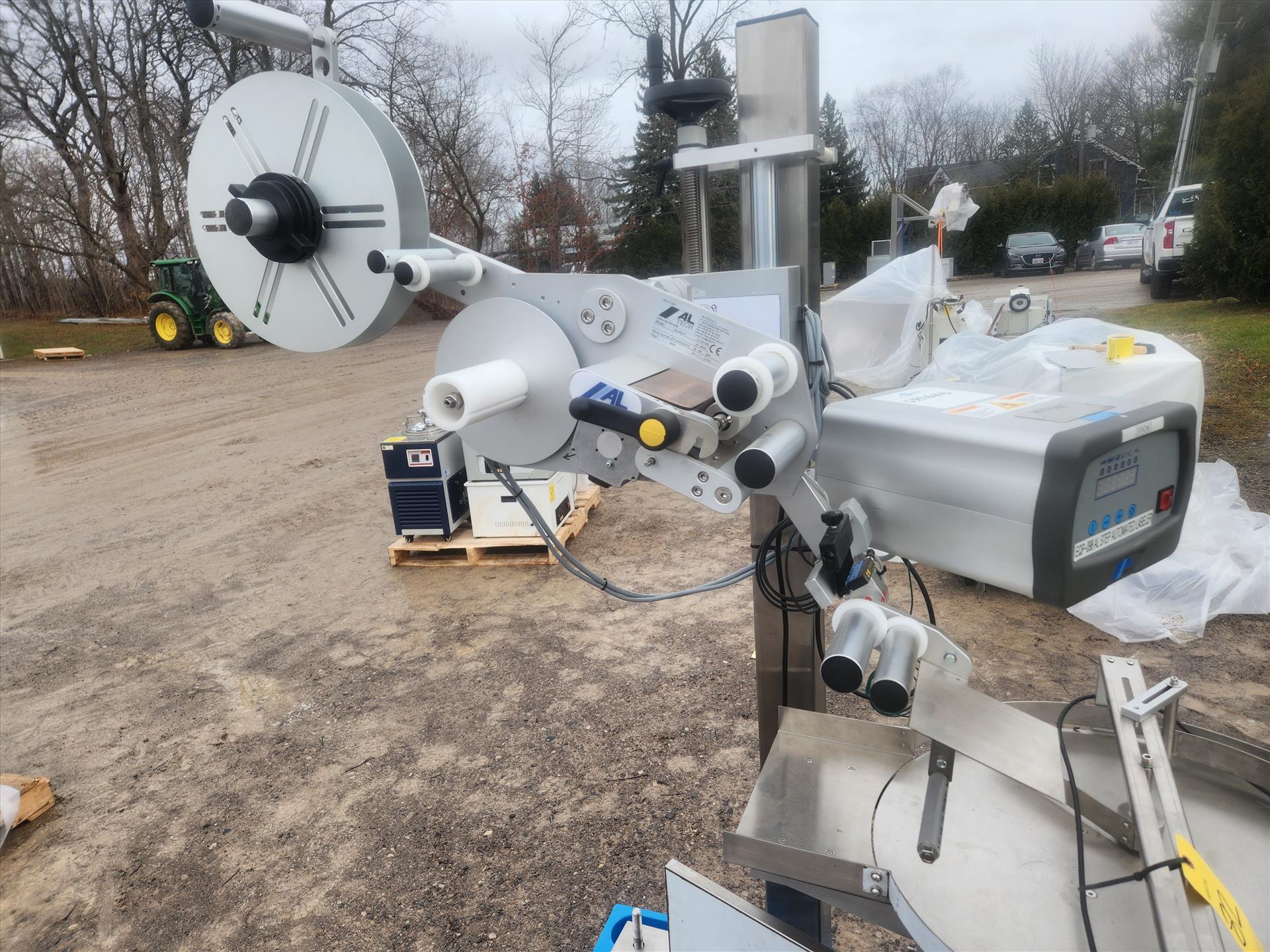 ProcePack/AL Tech automated labeller, mod. AL STEP S, ser. no. P21-03-00 w/ 24 in. dia. accumulation table [Loc. Barn]