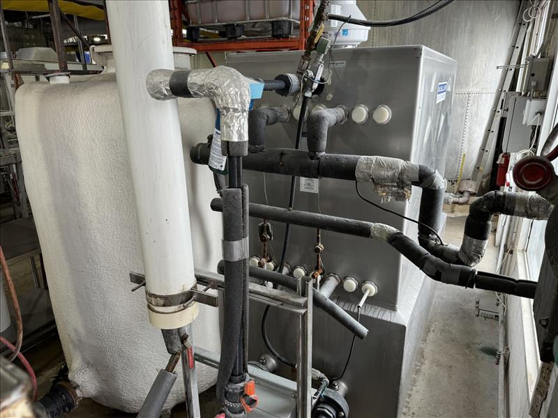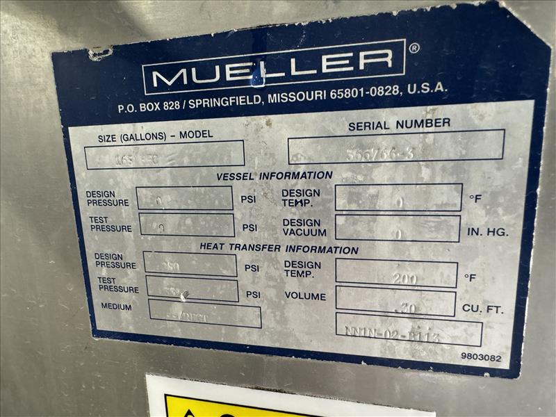Mueller Falling Film Water Chiller mod. 165-FPC s/n 366766-3, 69 in. x39 in. x77.75 in. , SS, 50 GMP, 7.67 ton capacity, w/ Roof-top air colled condenser 120.5 in. x40.25 in. x40.5 in. [Loc. Dough Mixing - Bulk Storage]