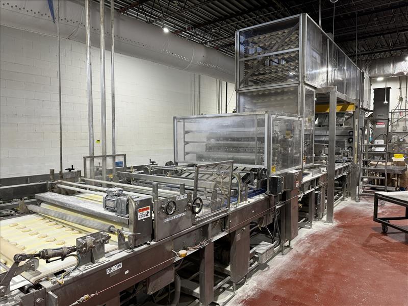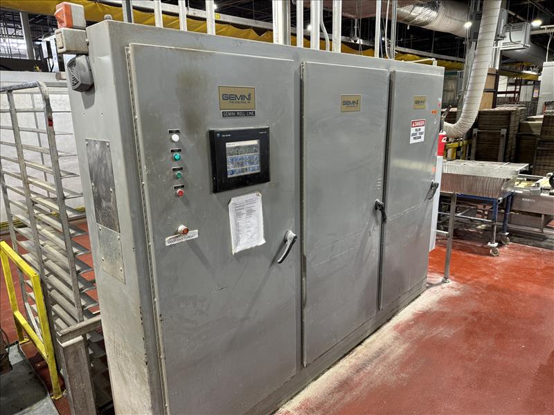 Gemini Roll Line mod. Tewimat S-HD s/n 40019314-G, 24 in. belt weidth, 230 volts, w/ intermediate proofer, bypass conveyor, sheeter section, reverse molder, Kaiser stamper, sponge roller, reciprocator, 39.5 in. x47.25 in. x59.0625 in. , zig zag alignment gate, secondary discharge conveyor [Subject to entirety bid - Lot 109]