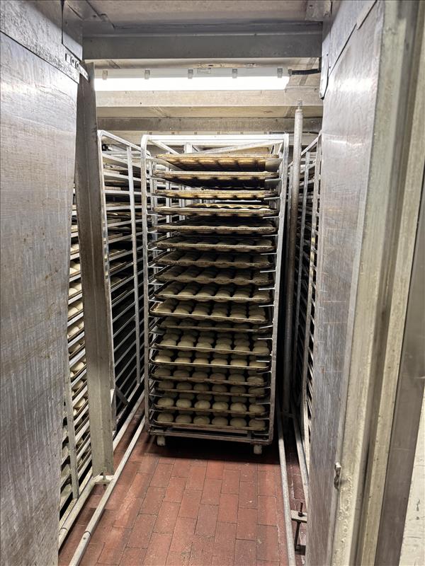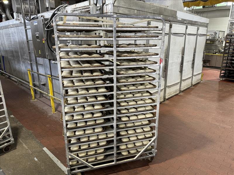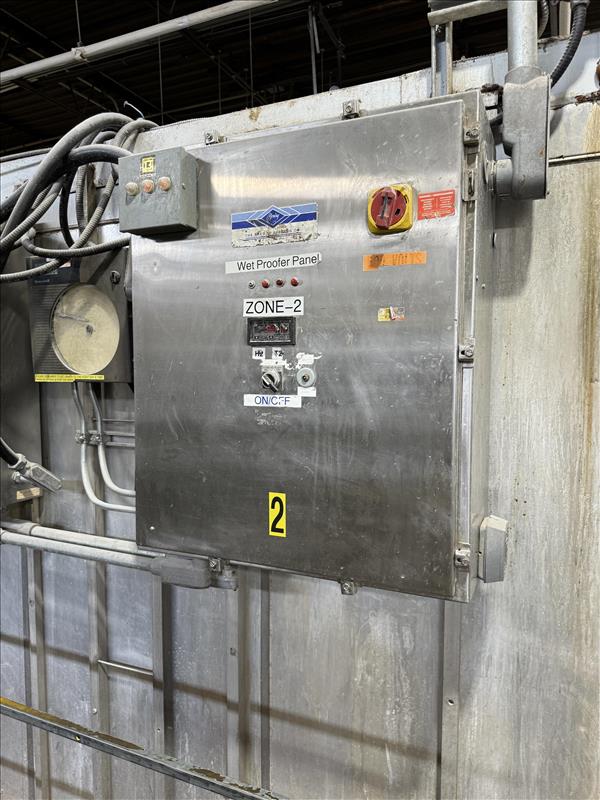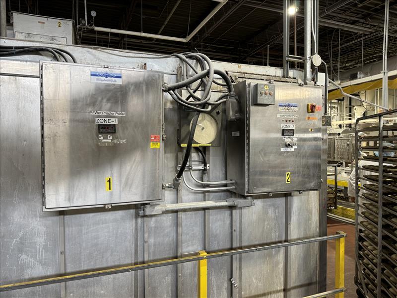 Pfening Wet Proofer,mod. 110A, s/n 110-2121, 29 ft x 17 ft x 12.5 ft, 575 V, SS, 5-lane design, 10 front and back doors, 2 zone system with exterior mounted control panels [Bread Production Line]