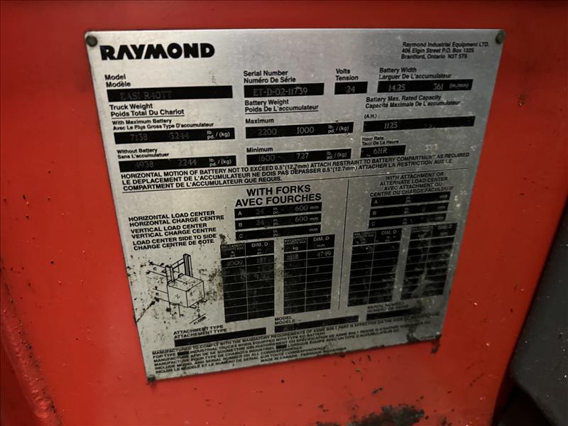 Raymond Stand-up Forklift, mod. Easi R40TT, s/n ET-D-02-11759, 24 volt, 4500 lb capacity w/ battery