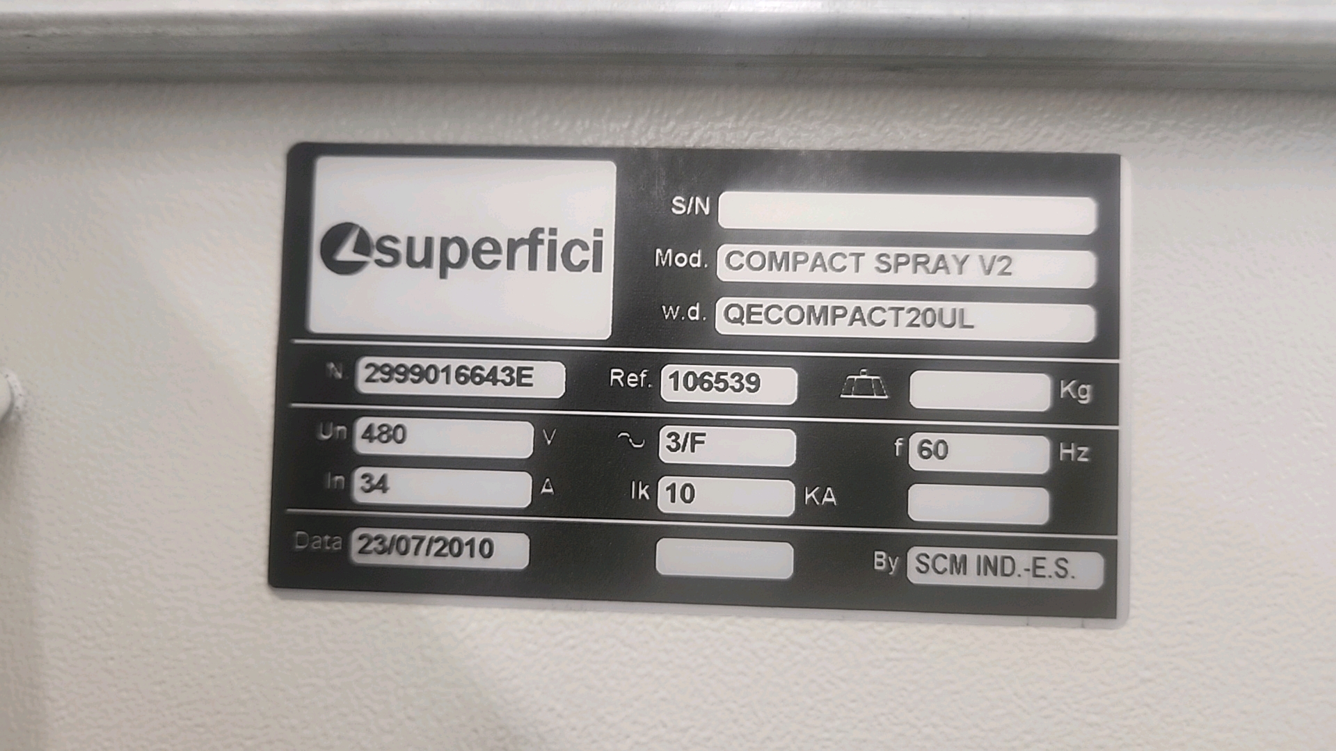 Superfici Compact Automatic Spray System, Spruzzatrice, mod. Compact Spray Plus R w/ control panel, mod. E83/20 (Subject to confirmation. The winner will be determined based on the sum of bids on lots 2A-2F vs on bulk bid lot 2)