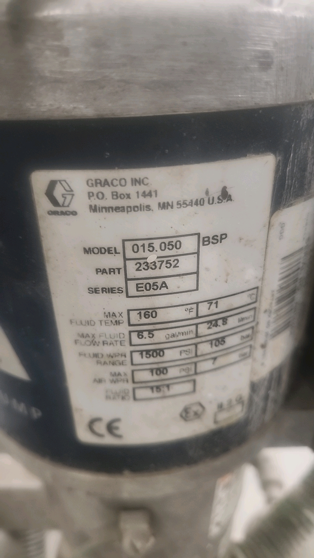 Graco Merkur paint pump system, mod. 015.050BSP, series E05A (Subject to confirmation. The winner will be determined based on the sum of bids on lots 2A-2F vs on bulk bid lot 2)