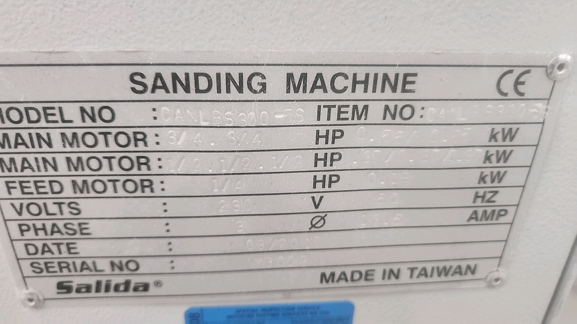 Cantek Three Sided Lineal Brush Sanding Machine, mod. CANLBS300-5S, ser. no. M3009 (2015)