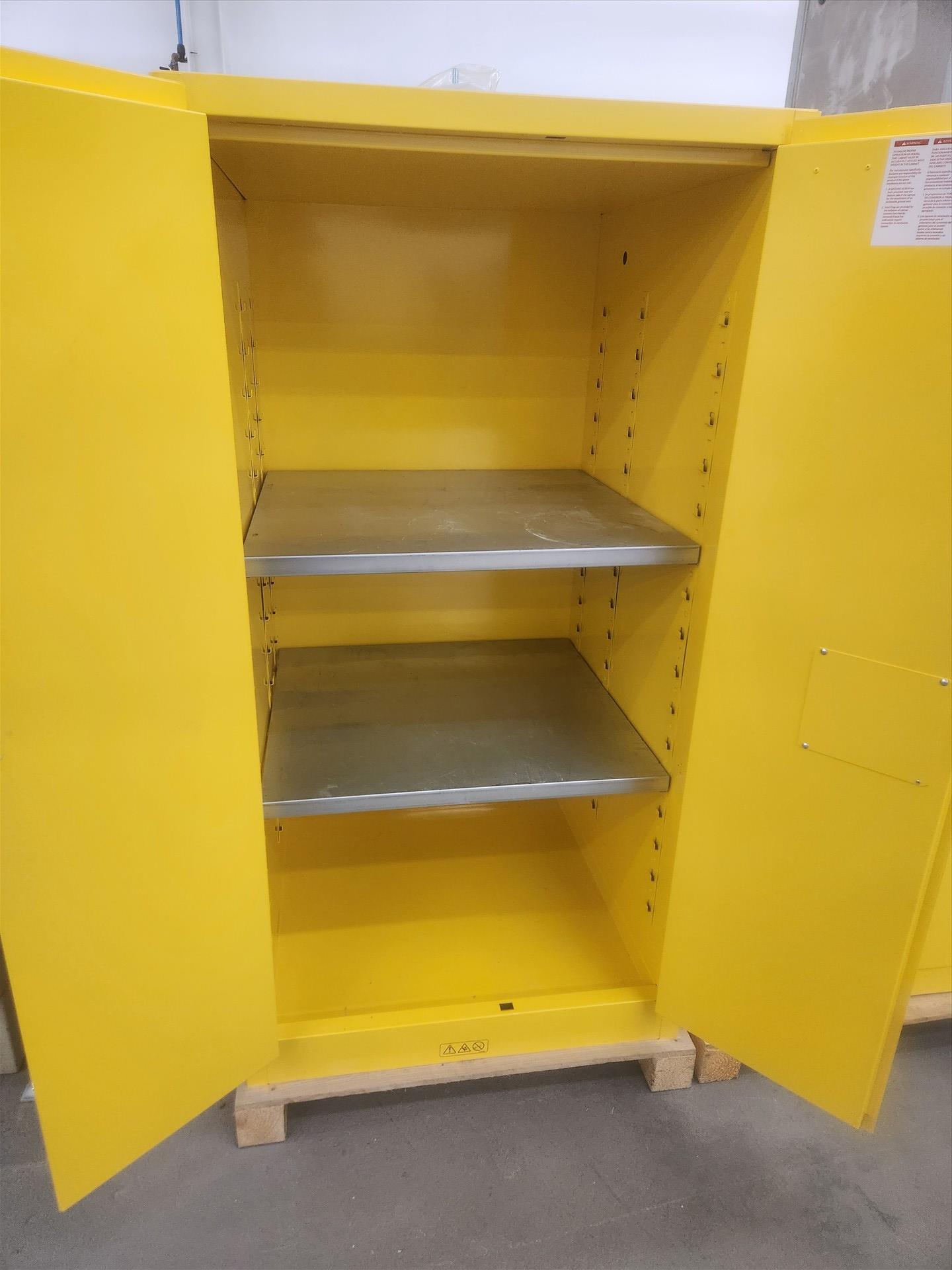 Uline Flammable Liquids Storage Cabinet, mod. H-1565M-Y (Yellow), 60 gal. cap., approx. 34 in. x 34 in. x 65 in. high