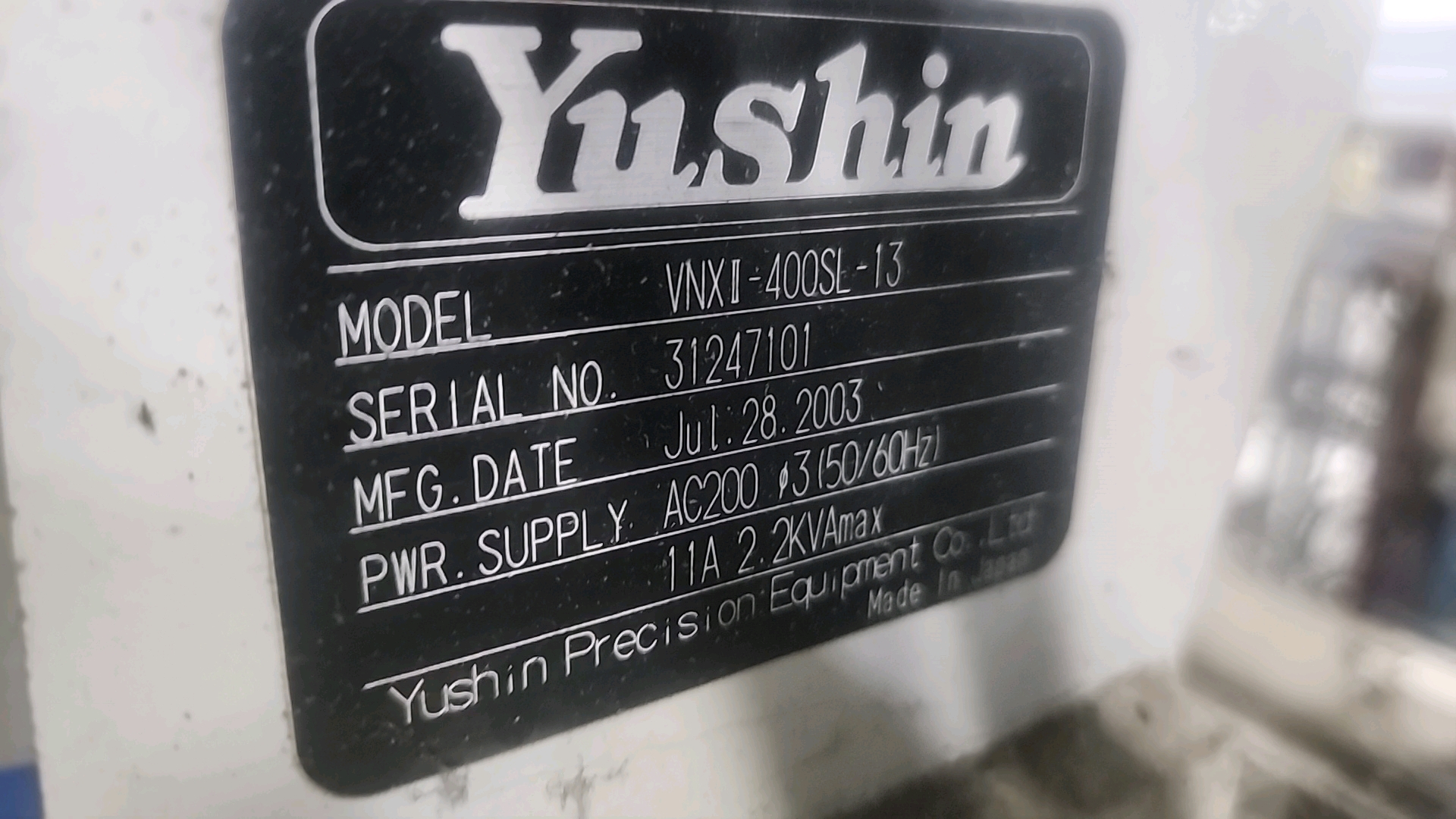 Yushin Netliner VNXII-400S servo traverse take-out robot w/ controller s/n 31247101
