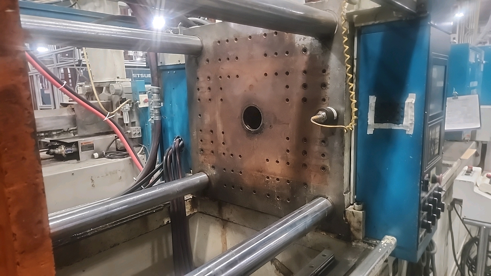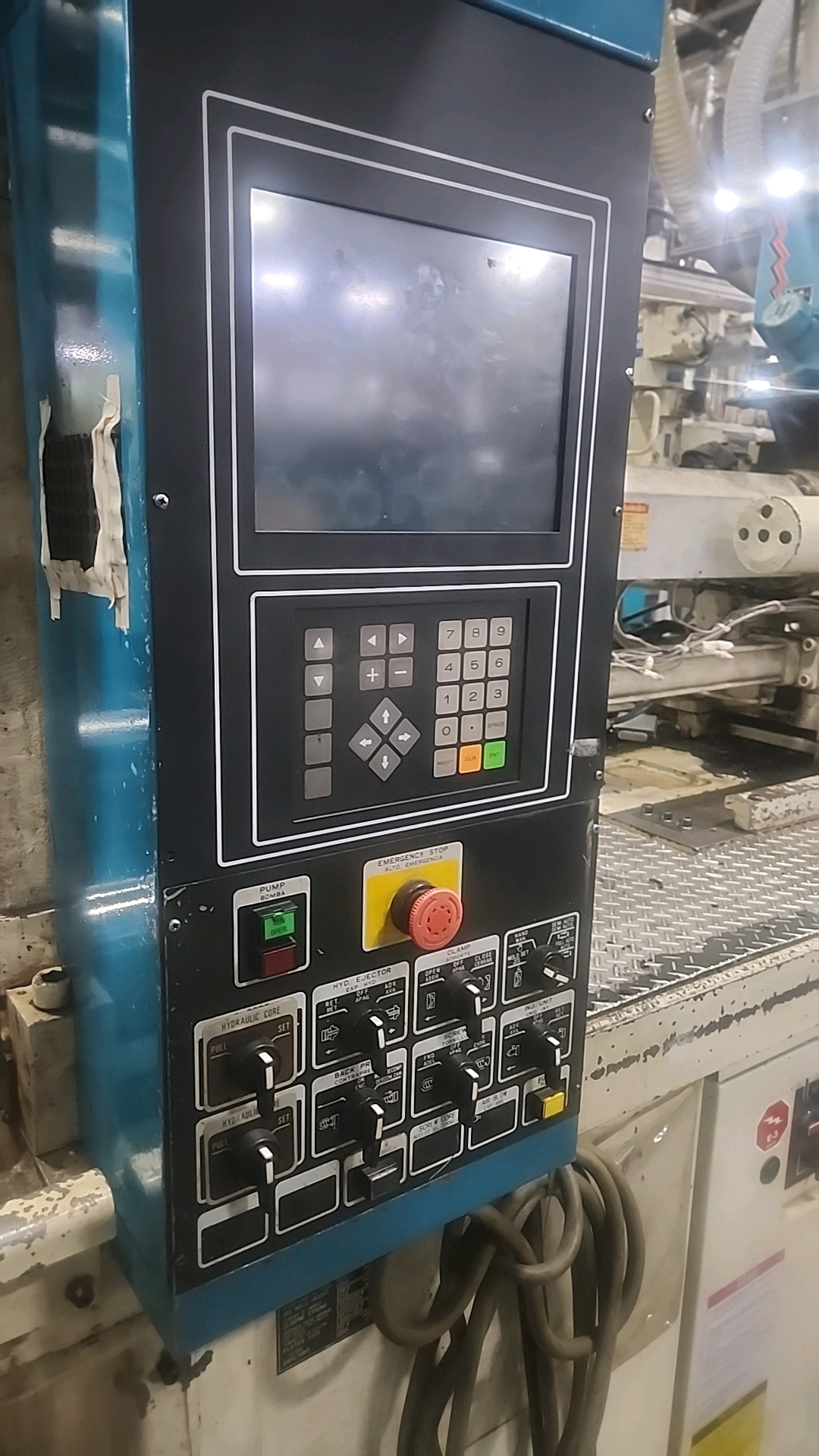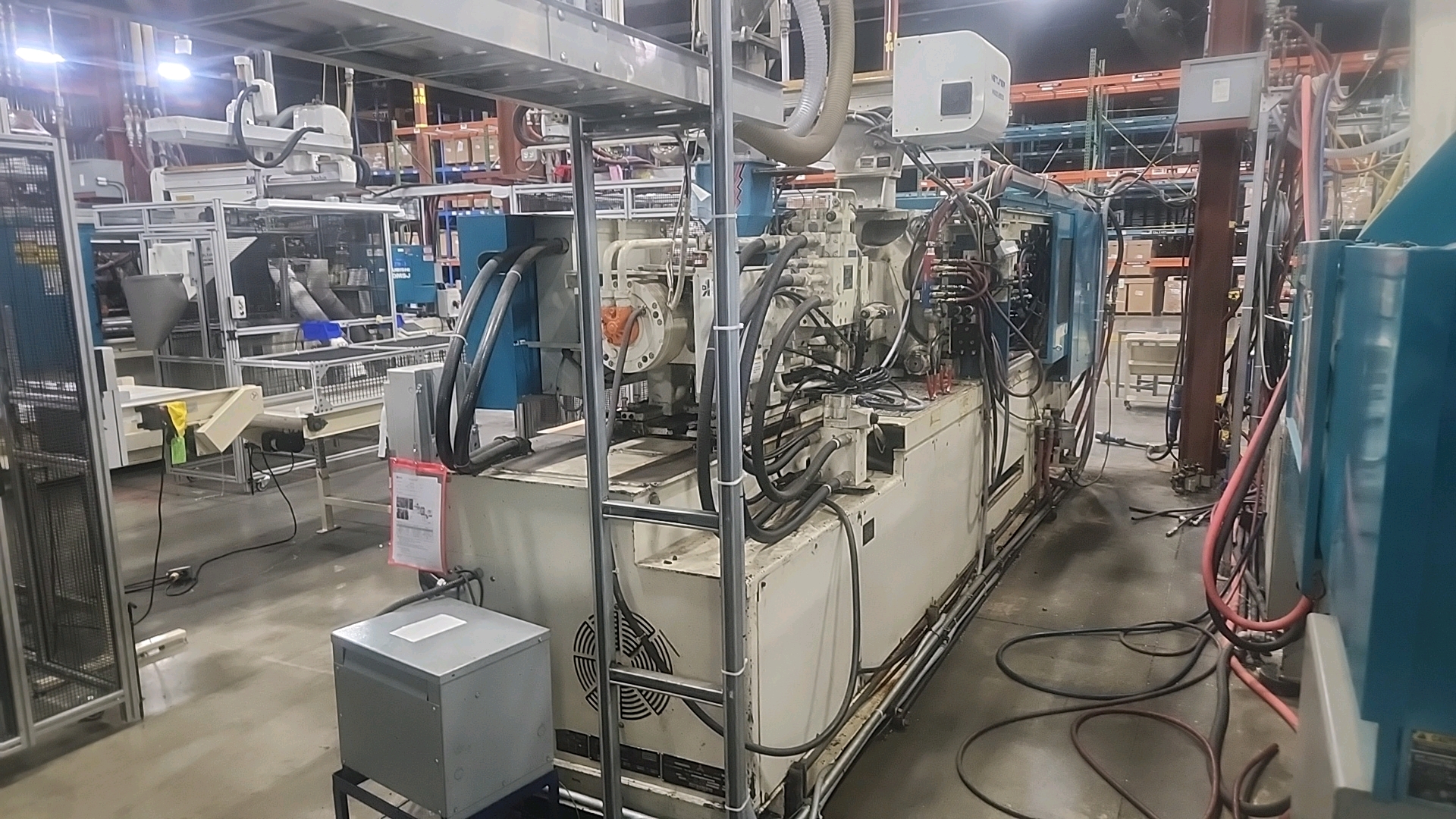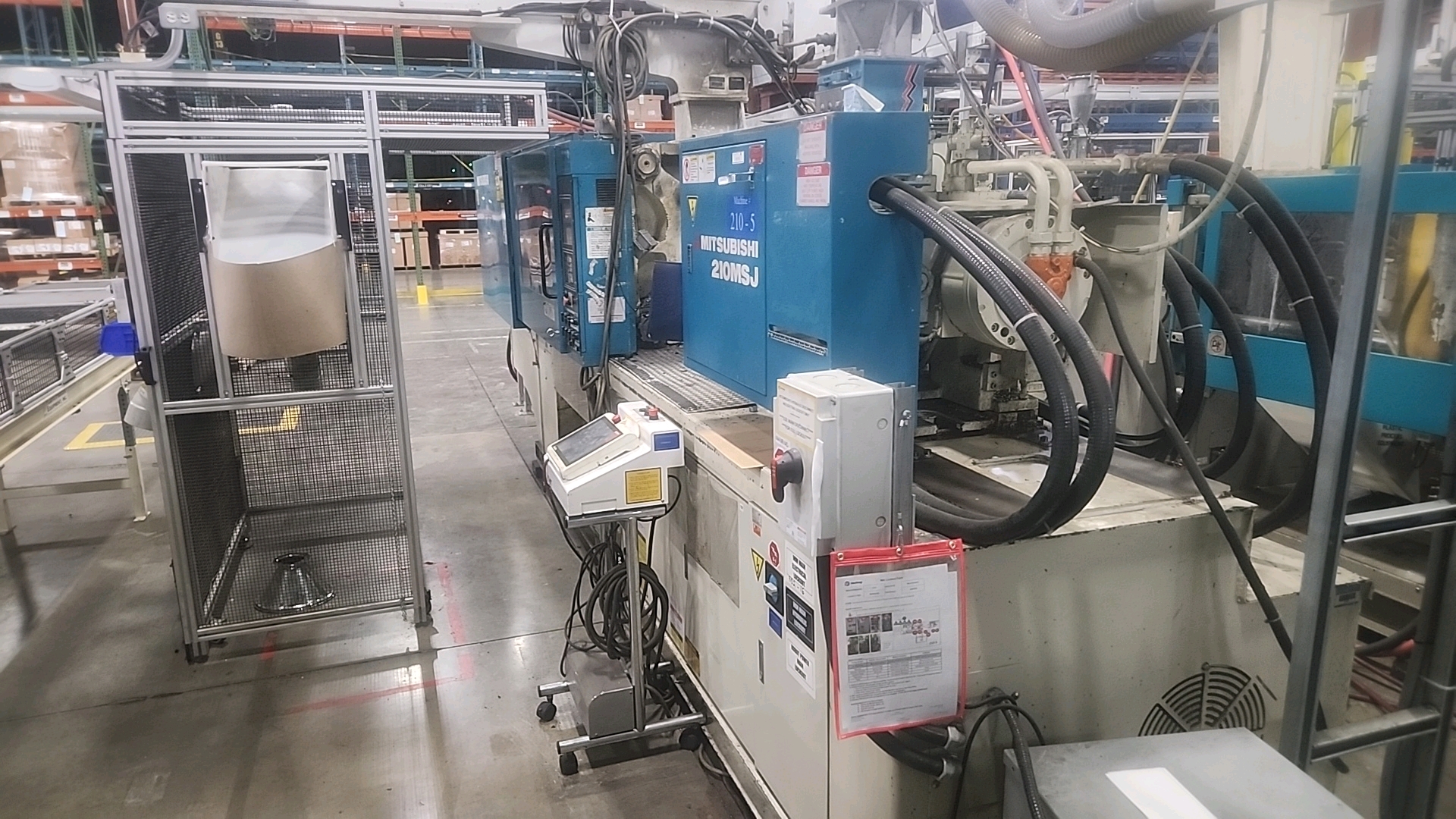 Mitsubishi injection molding machine, mod. 210MSJ-17, 16.3 Oz, Hydraulic, Mac Vii Control, Tie Bar 22 in x 22 in, Min Shut 9.4 in Daylight 37.4 in, Core Pull Valves, Robot Interface, ser. no. VS19D041 (2003), c/w Nucon Wittmannn vacuum loader and Bunting Neo drawer magnet, transformer w/ safety cage
