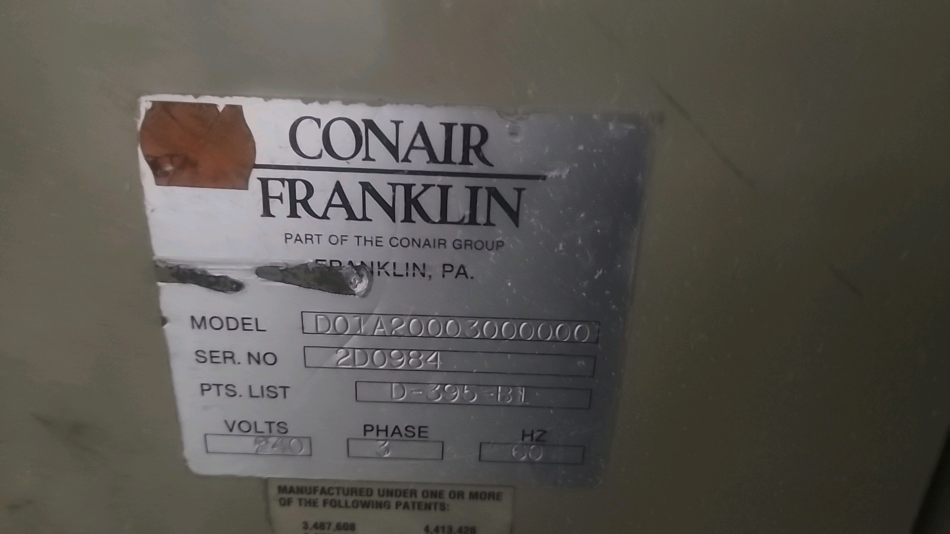 Conair carousel dryer, mod.CD-100, ser. no. D-365-B1 (requires repair/for parts)