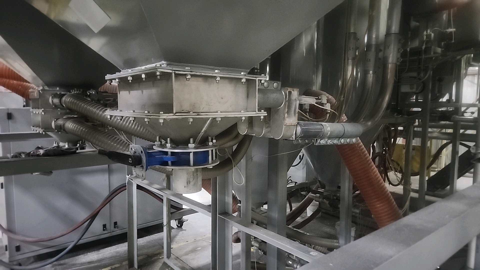 Nucon Wittmannn resin dryer day bin (LRG), bottom discharge w/ airlock, heater/blower, control panel c/w Nucon Wittmann vacuum loader c/w stand