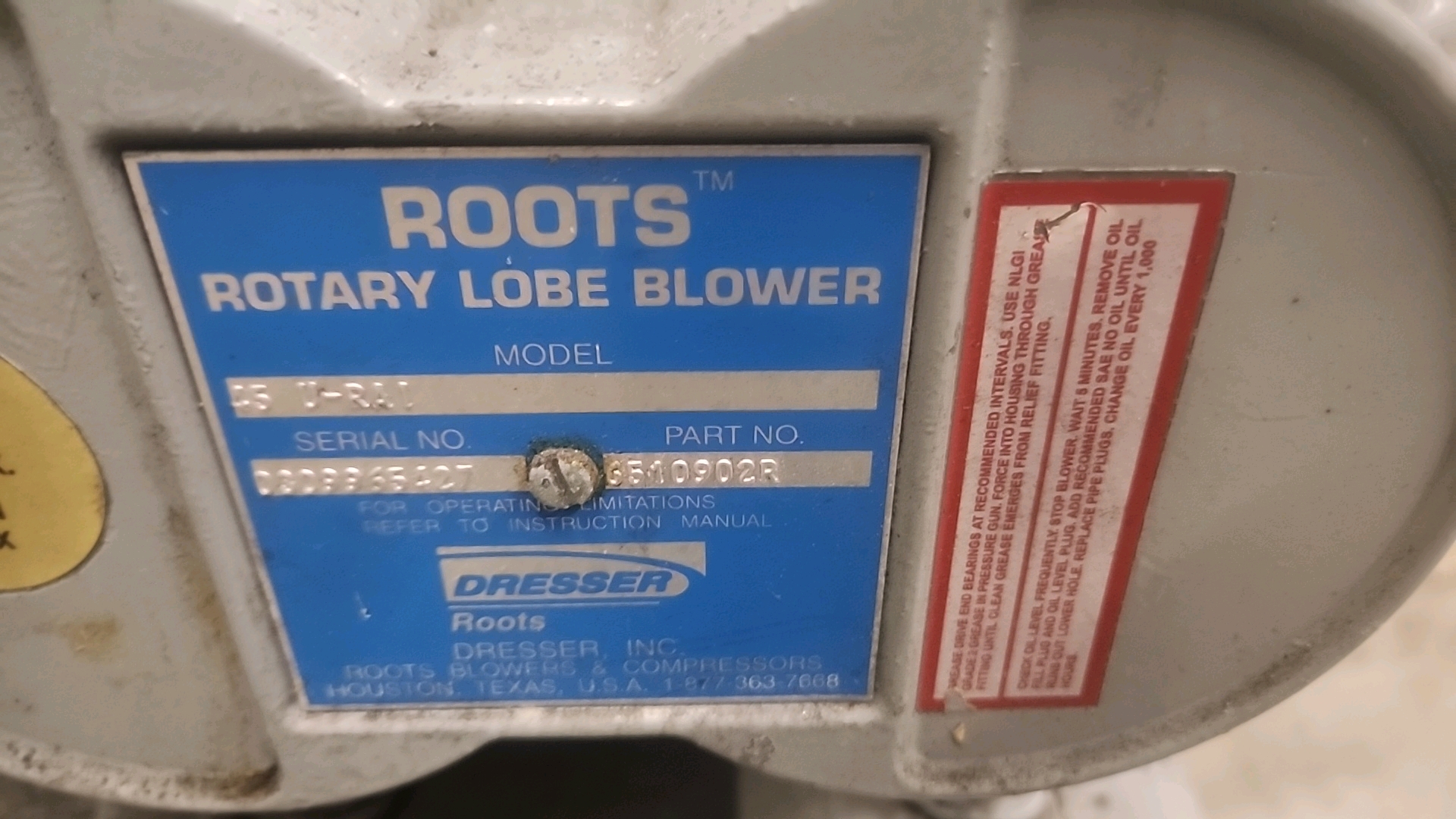 Nucon Wittmann/Dresser Roots rotary lobe blower/vacuum pump, mod. 45 U-RAI, 10 hp