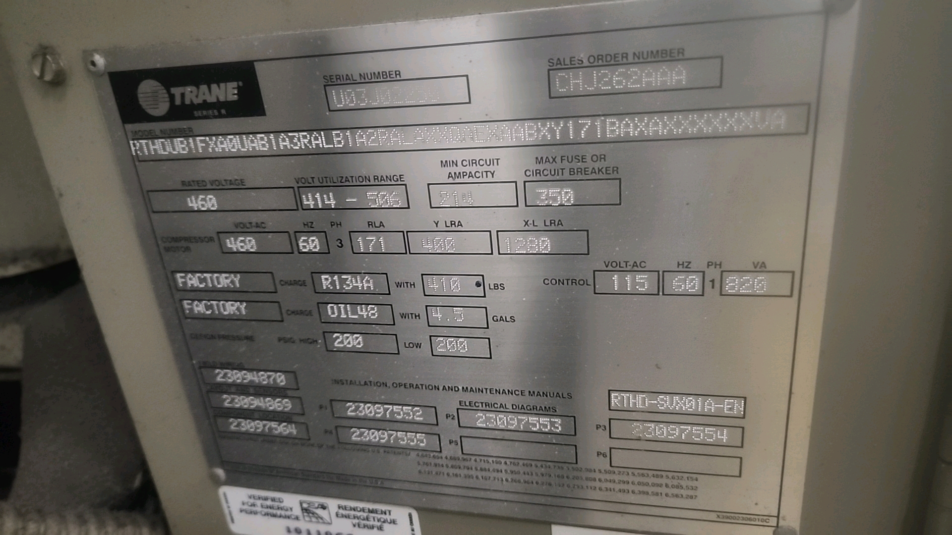 Trane Series R chiller, ser. no. U03J02250 w/ Adaptive Control
